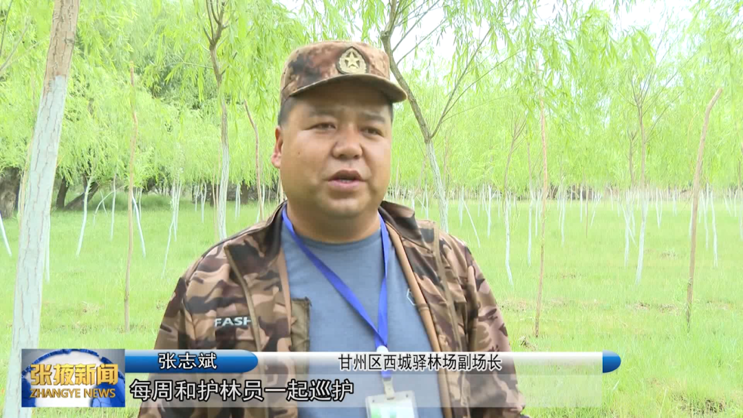 甘州区西城驿林场副场长 张志斌:“每周和护林员一起巡护,主要对边界防护设施进行检查,对林区内的有害生物进行监测和防治,林区内的灌水退化林分修复进行落实,冬季加强林区防火工作。”