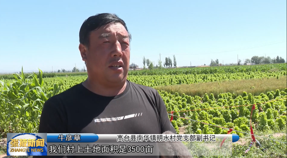 高台县南华镇明水村党支部副书记 牛彦章:“我们村上土地面积是3500亩,今年小制种西瓜、菜心、小豌豆制种面积是1300亩,今年的小制种收入比往年要(亩产)提高到20%-30%。”