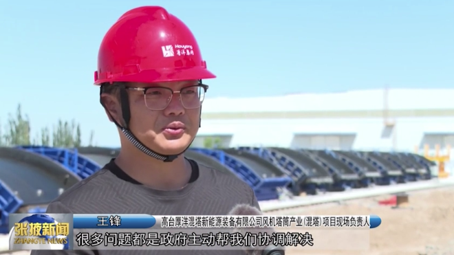 高台厚洋混塔新能源装备有限公司风机塔筒产业(混塔)项目现场负责人 王锋:“工期比较短,任务比较重,很多问题都是政府主动帮我们协调解决,所以我们进展很顺利,接下来我们会全力以赴。”