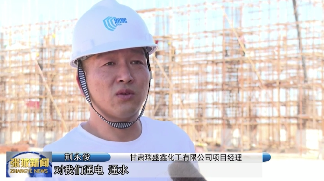 甘肃瑞盛鑫化工有限公司项目经理 荆永俊:“项目的快速推进也得益于当地政府的全力配合、支持,对我们通电通水‘三通一平’方面也是全力以赴提供帮助,让我们项目能够顺利进行。”