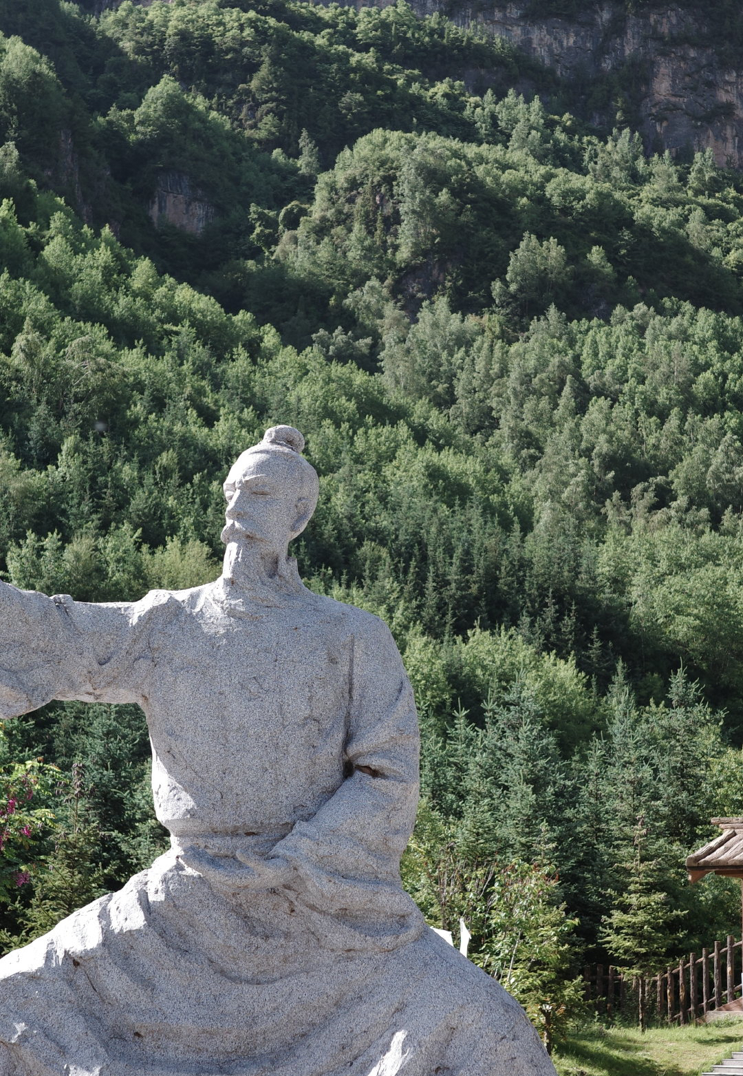 进入景区映入眼帘的便是明代著名道士张三丰雕塑,相传张三丰在宝鸡金台观“失踪”以后,云游至遮阳山,在此专心修道,最后跃入龙潭,或曰在山内玉笋峰羽化成仙。三丰羽化遮阳山的故事又为这里增添了几分神秘的色彩。