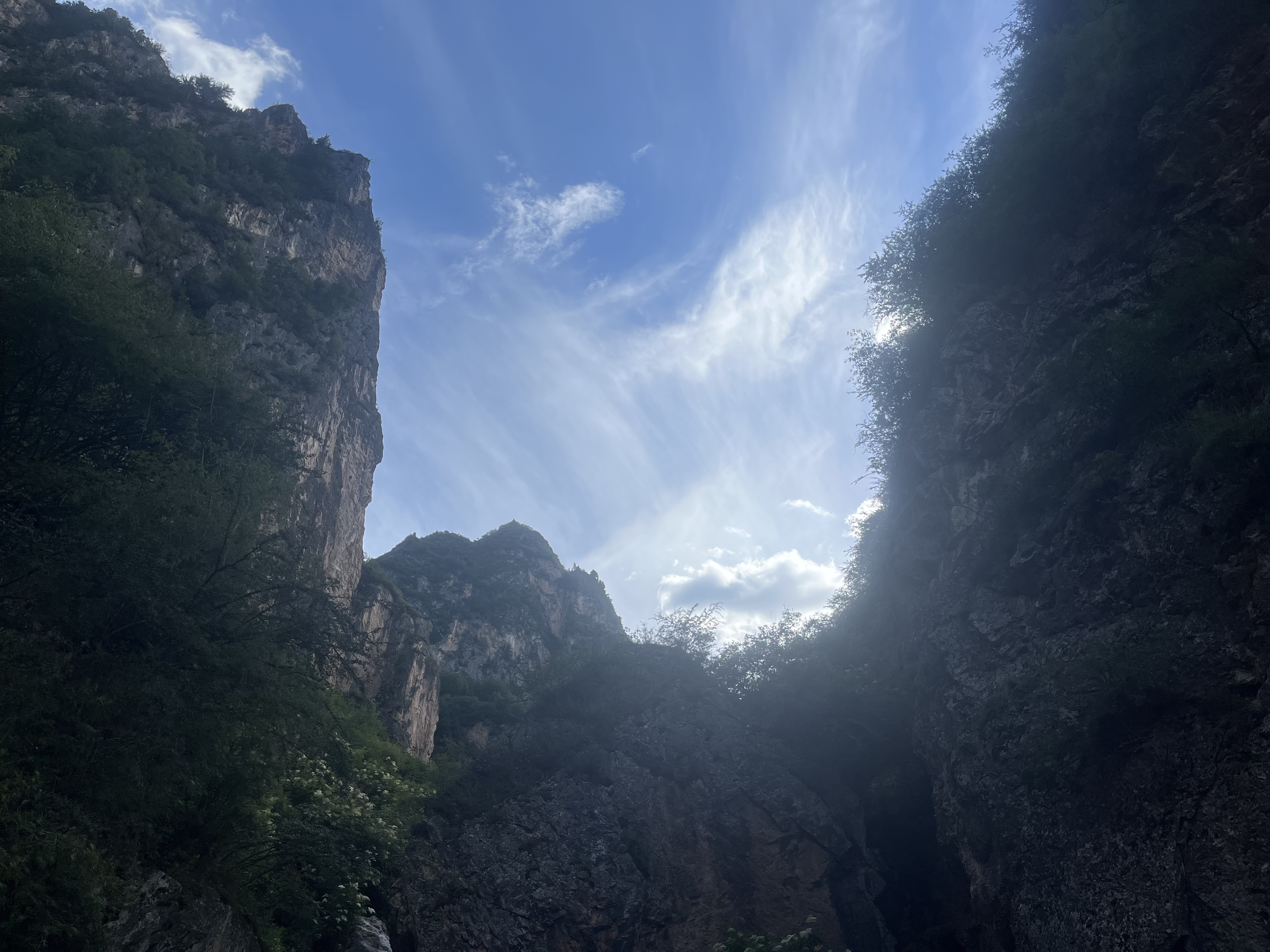 初到遮阳山,夏日热浪渐渐散去,清凉瞬间转变为冷意。入眼皆是盛夏的绿,风从群山中吹来,掠过树梢,穿过叶子,悄然而至。河流顺着高山涓涓流下,这是森林独有的凉爽。