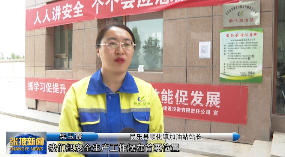 民乐县顺化镇加油站站长 柴玉霞:“我们把安全生产工作摆在首要位置,牢固树立安全责任意识,强化日常检查和隐患排查力度,落实安全防护措施,定期做好员工安全培训、教育、演练工作,确保站内安全生产零事故。”