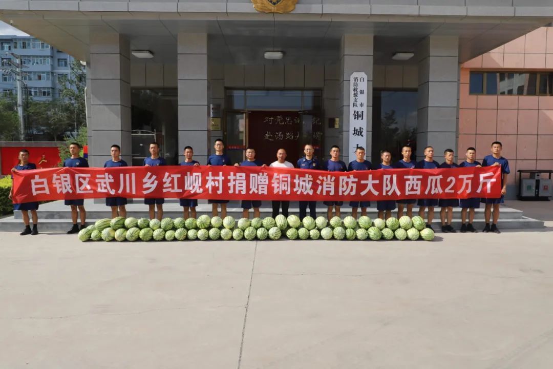 瓜农卖瓜有困难,媒体成“媒人”,社会各界爱心人士、爱心企业等单位踊跃购买,争当“吃瓜群众”,跑出了一场“甜蜜”的爱心接力赛。“我们的西瓜不仅在本地销售,还大量销往外地,截止目前,整车发往湖南售卖的西瓜就有20万斤。我们本地的企业也从我们这里积极订购西瓜,除此之外还有好多群众个人也参与购买,目前我们已经在咱们本地卖出25万斤西瓜啦!”武川乡红岘村党支部书记 强生学说,“另外,我们向白银区的铜城消防大队捐赠了2万斤西瓜,希望为社会尽一份绵薄之力。”