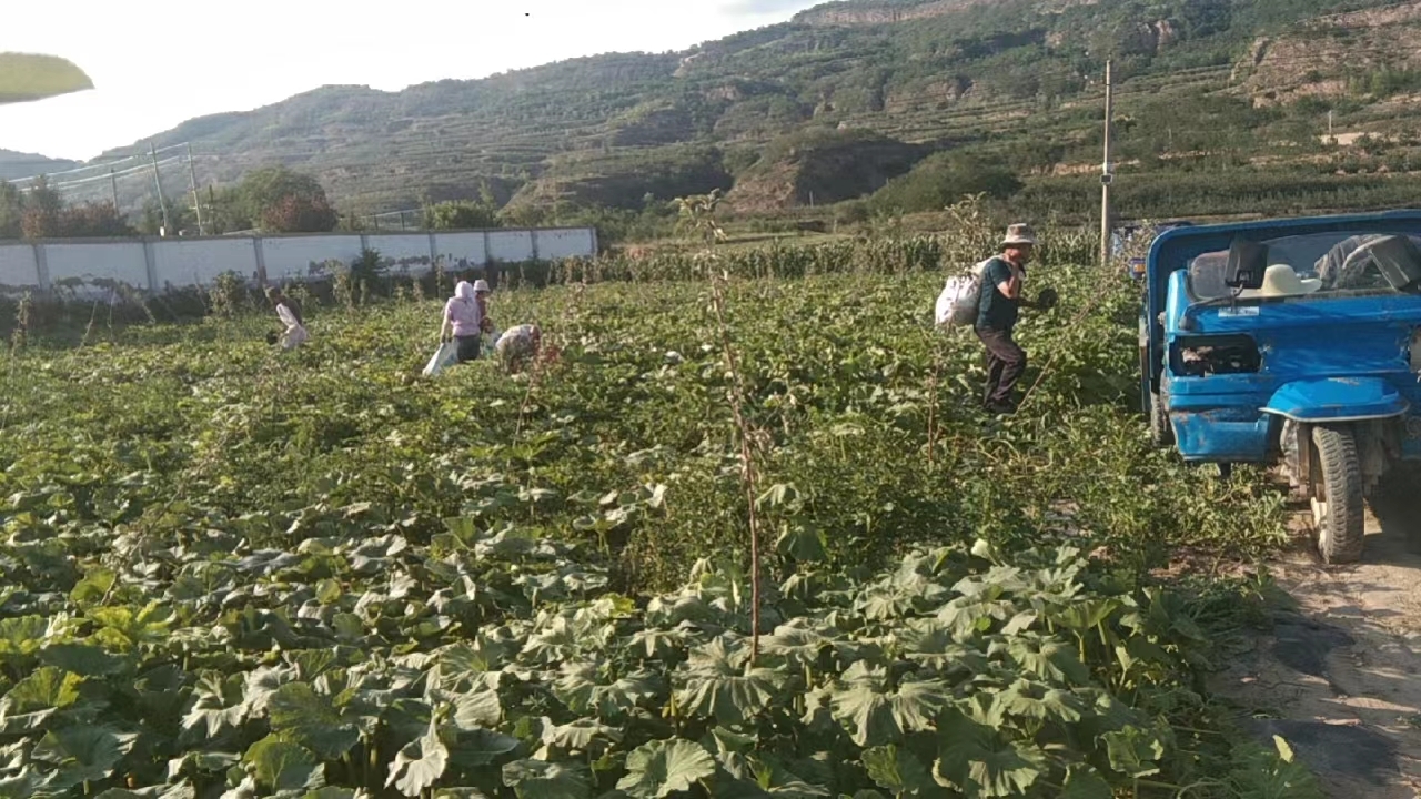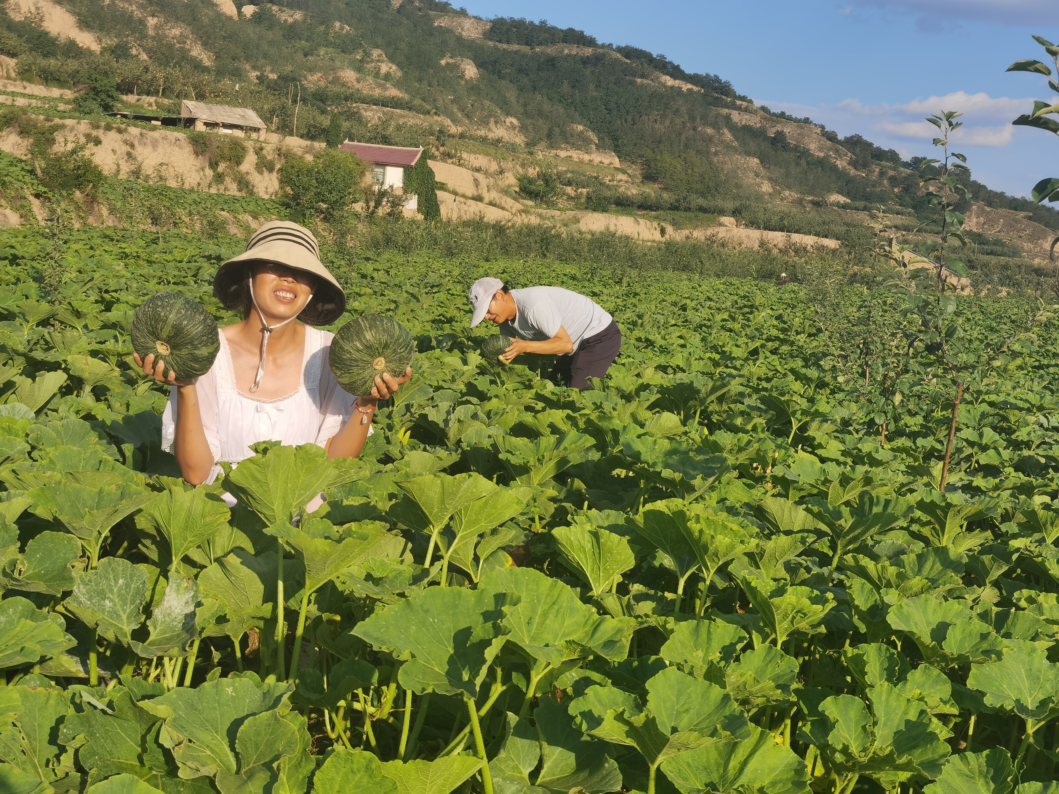 盛夏时节,万物繁茂。走进静宁县深沟乡深沟村,放眼望去,田间新植果园长势良好,果园间套种的一颗颗墨绿色的板栗南瓜藏在一片片绿油油的叶子底下,瓜农们来回穿梭在瓜田中,不断地俯下身子剪掉根茎,采摘、装袋、打包、转运,处处一幅忙碌的丰收景象。