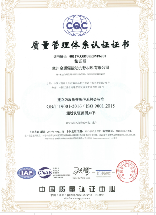 2016年,金川集团兰州金川新材料公司的科创型子公司——兰州金通储能动力新材料公司依托金川的资源、技术、人才优势,正式涉足三元前驱体产品的研发、生产及销售。