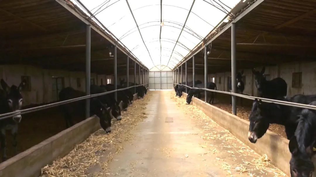走进甘肃恒玉黑毛驴养殖基地,圈舍里科学投喂和养殖设备一应俱全,上千头通体乌黑、体格高大、体形匀称的黑毛驴正整整齐齐地吃草。