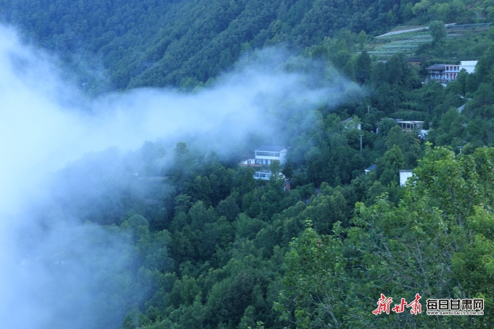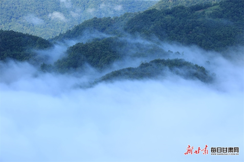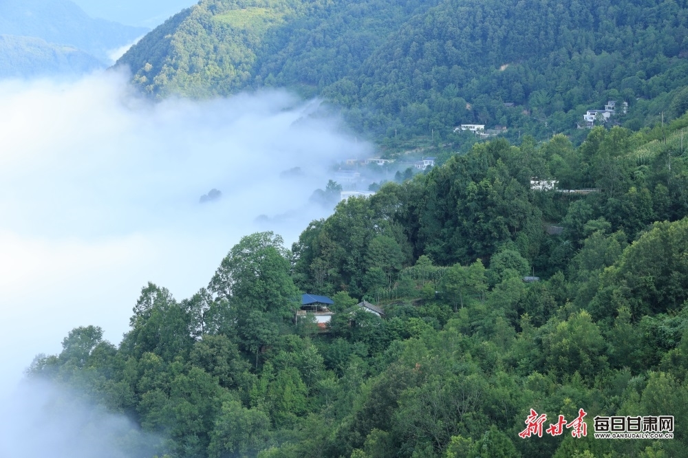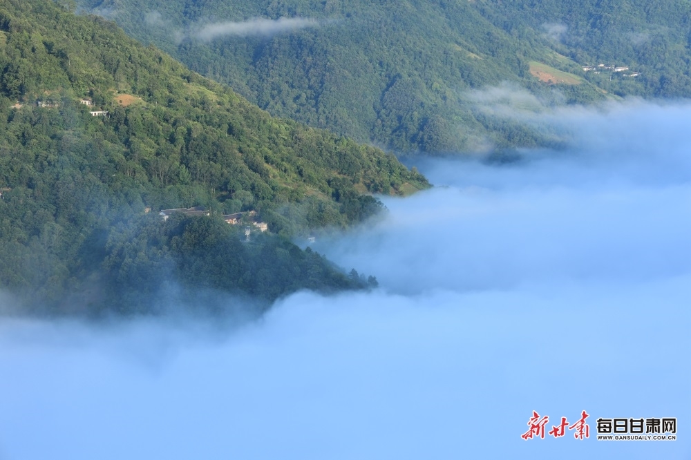 夏日,雨后初晴的陇南市康县铜钱镇低垭子现云海景观。放眼望去,茫茫云海在山峰间奔涌,群峰、乡村在云海中若隐若现,美如仙境。