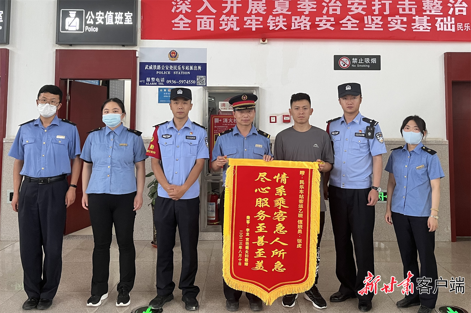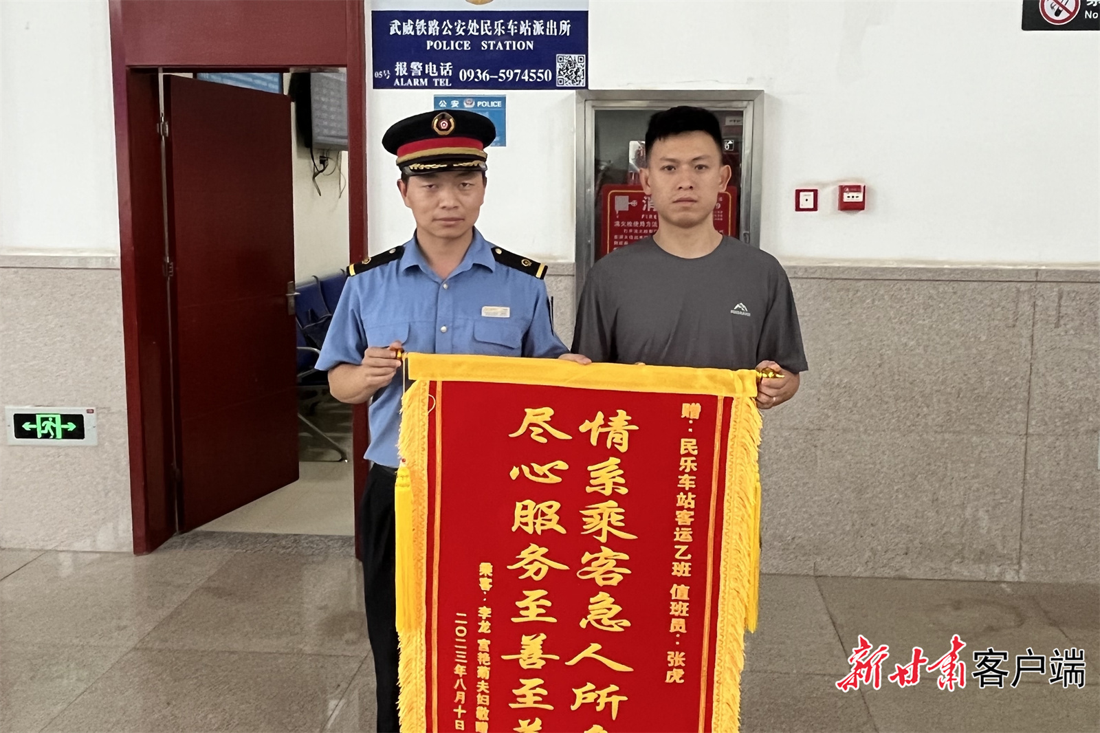 新甘肃客户端讯(新甘肃·每日甘肃网记者 王宇晨)“请收下这面锦旗,再次感谢你们的帮助!”8月10日,远在新疆工作的复转军人李先生把一面镌刻有“情系旅客急人所急,尽心服务至善至美”锦旗送至武威南车务段民乐车站客运班组,向工作人员表达感谢之情。