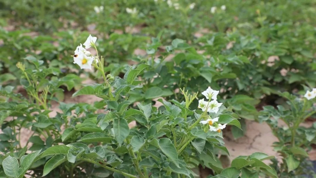 眼下,马铃薯正值花期,用一抹白色装扮着大地。这些埋在地里的是马铃薯原种,正孕育着生命的律动。