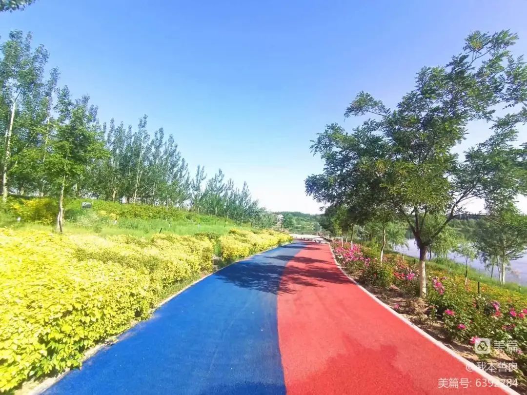 当你来到这里,首先映入眼帘的是彩色塑胶步道,顺着步道前行,各色鲜花开满路边,静谧的湖水倒映着山峦,微风拂面,仿佛置身江南水乡,让人流连忘返!