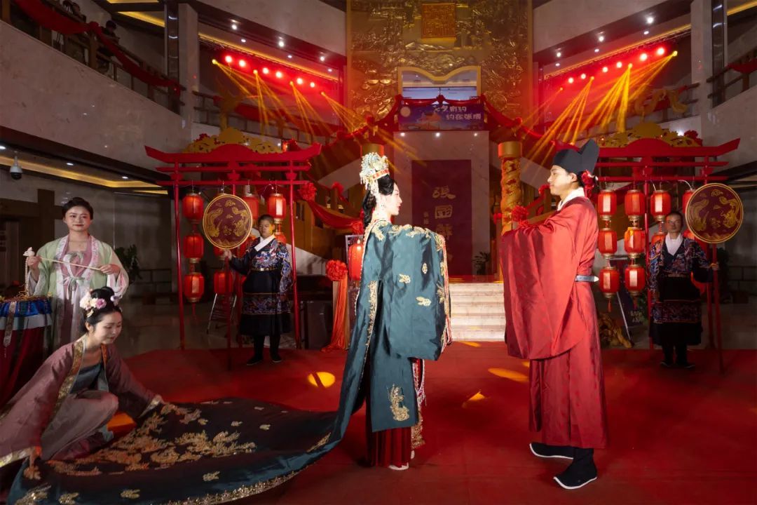 当天,活动以馆藏精品中的爱情元素为切入点,结合传统文化活化利用,为市民和游客带来汉代、宋代、明代、新中式、裕固族等各种婚服的走秀展示、婚俗礼仪知识互动。