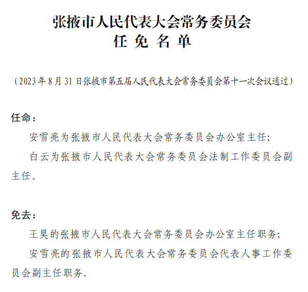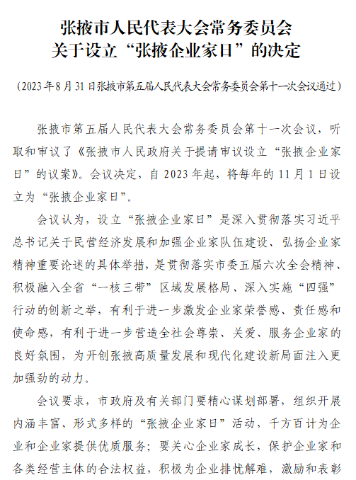 相关新闻:张掖市第五届人民代表大会常务委员会第十一次会议文件