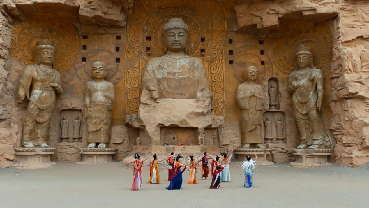 从筹备到开拍,为了复原敦煌文化,郭吉勇导演一次次飞往敦煌勘景、研究,最终选取了9个洞窟中的形象。为了更好的呈现敦煌绝美舞姿,舞蹈部分还邀请了西北师范大学敦煌学院的编舞老师苏瑞璇和她的7位学生,又联系到了“神魔佛仿妆大神”妞妞妞一起来群舞演绎。
