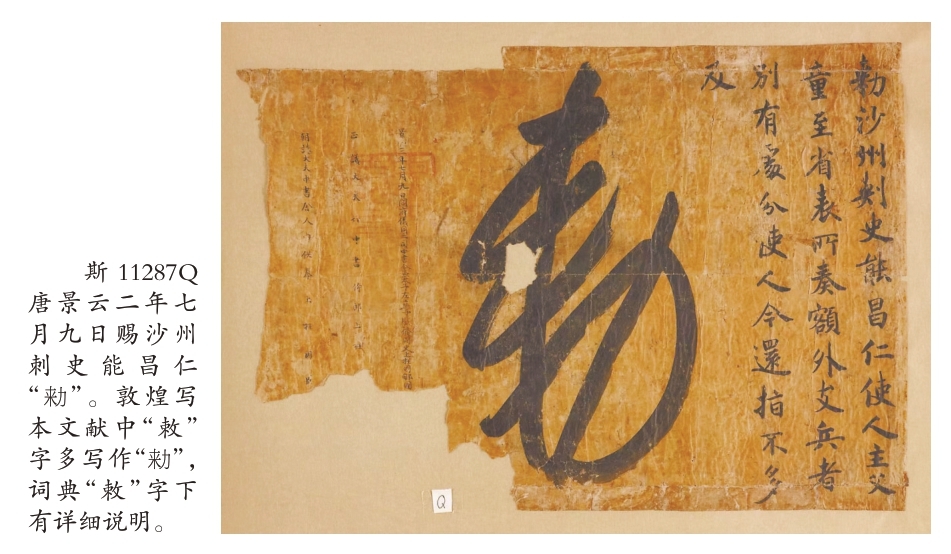 条目收集确立。确立条目是词典编纂的第一步。在收集材料阶段,作者们开始是使用前人做好的整理本,但发现问题很多,于是直接从敦煌文献原卷中收集词条,其中包括大量不见于其他工具书的条目。例如“画指”这个条目,《汉语大词典》《近代汉语词典》都没有收录,但敦煌吐鲁番契约文书中出现了“画指为信”“画指为记”“画指为验”这样的话,而且还有实物图为证。“画指”就是指在契尾的署名旁描摹指节以作凭据,是一种早已失传的法律文书中表示征信的方式,主要见于唐代贞观以后至敦煌吐蕃占领时期。
