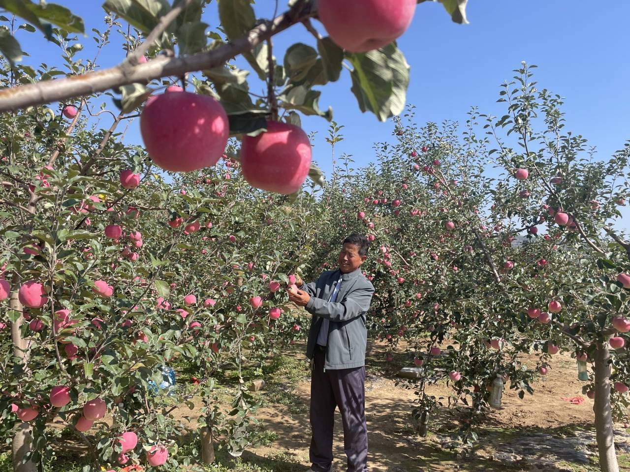王张姓说,现在早熟苹果开始上色,到九月二十号左右就能下树上市了。价格这几年挺好的,他的5亩早熟苹果估计能买八、九万。