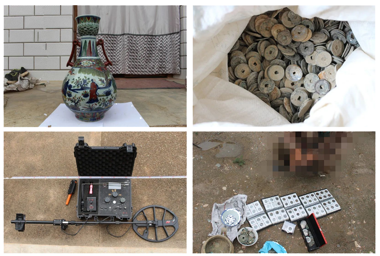 今年7月初,会宁县公安局刑侦大队民警根据在工作中发现的一条涉嫌倒卖文物的线索,快速展开侦查,并近日将犯罪嫌疑人张某抓获归案,当场缴获古钱币3000余枚、瓷器4件、陶器5件、铜器1件、铜印章3枚,查扣金属探测器1套。后经甘肃省博物馆涉案文物鉴定站鉴定,被查获的文物中,属国家三级文物2件、一般文物364件。