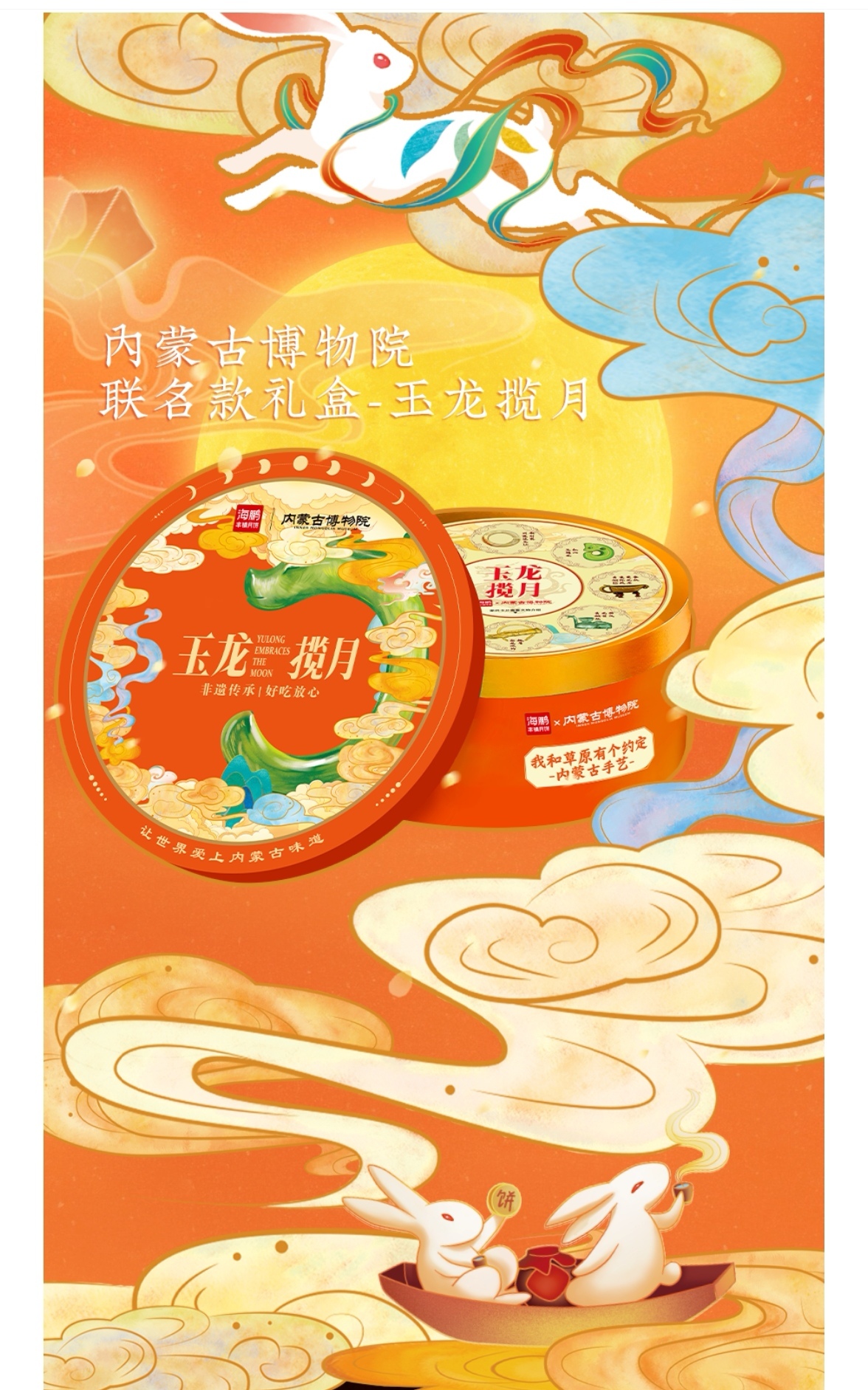 内蒙古博物院推出的联名礼盒以不同时期龙形象的文物与月亮的阴晴圆缺相结合为设计灵感,将“龙”这一中华民族的精神图腾在不同时代的形象演变串联起来,传承传统技艺,打造文化新礼,让更多人品尝草原味道的同时了解更多内蒙古博物院的馆藏和文化。