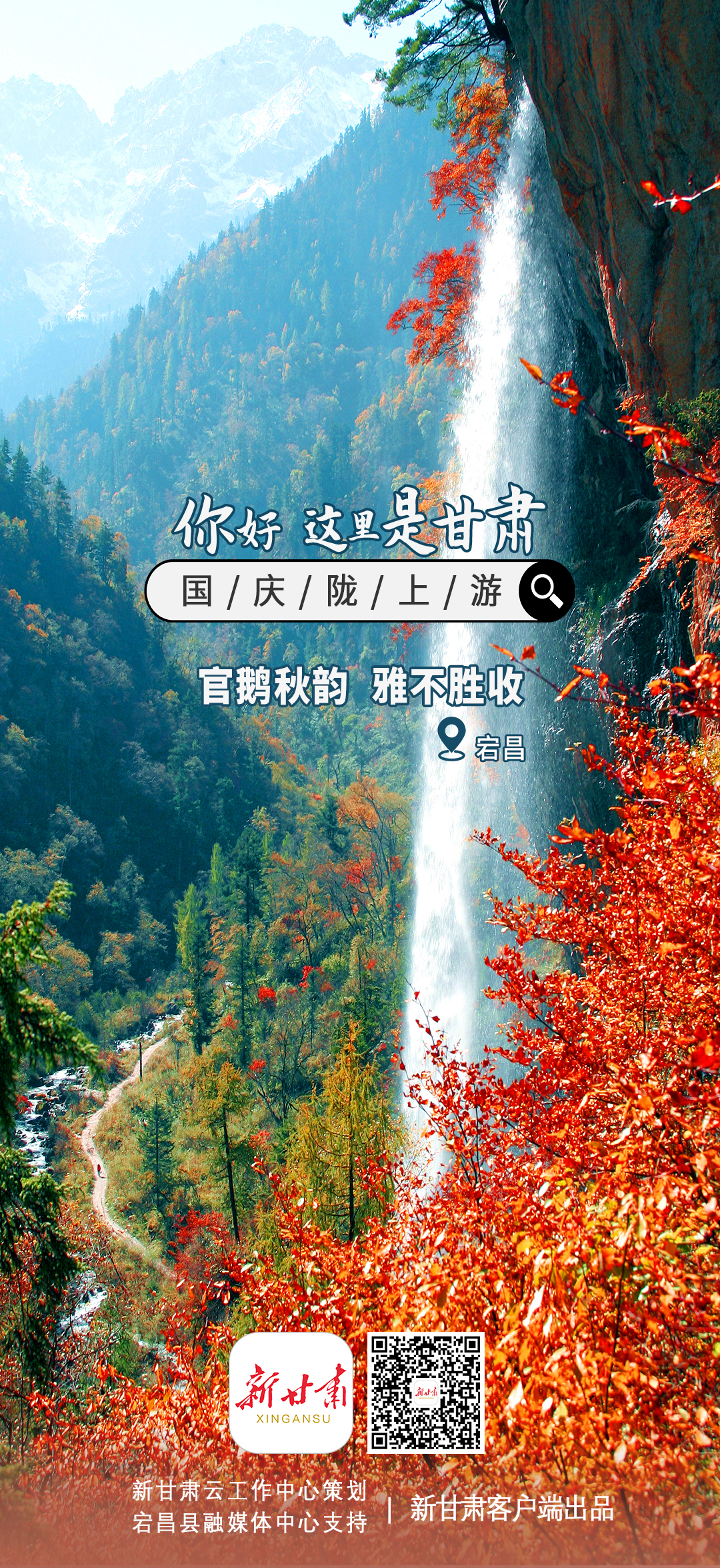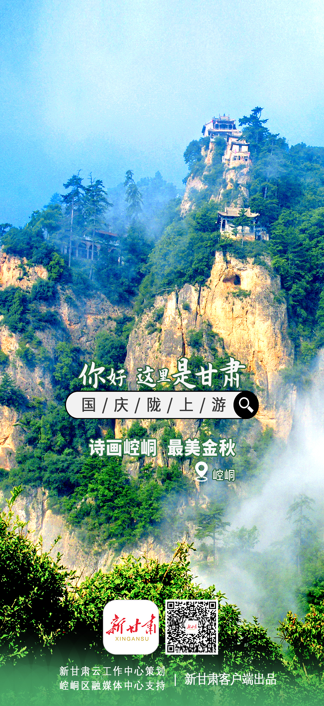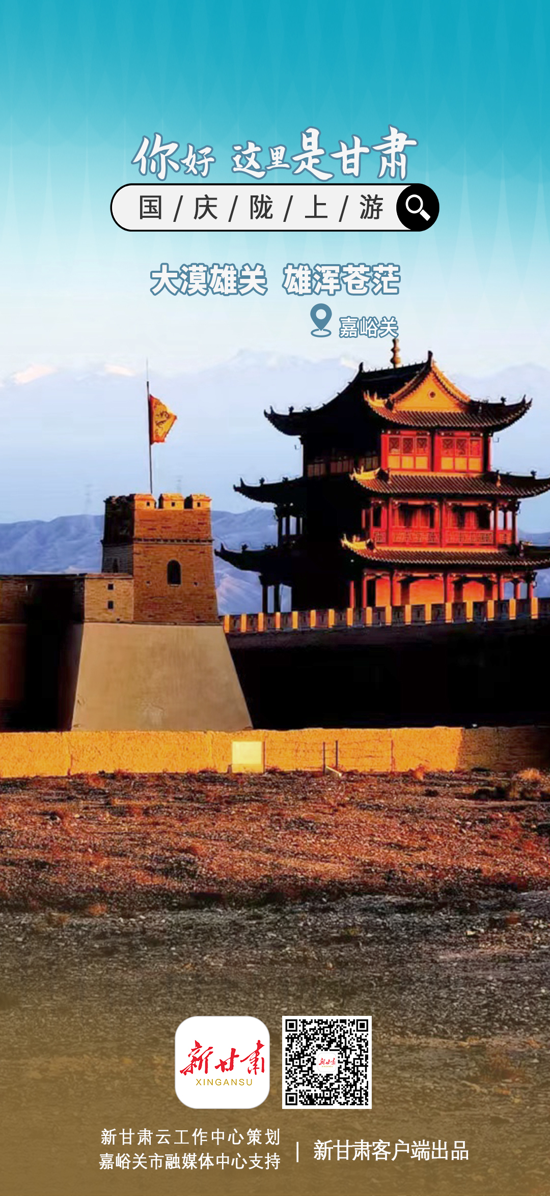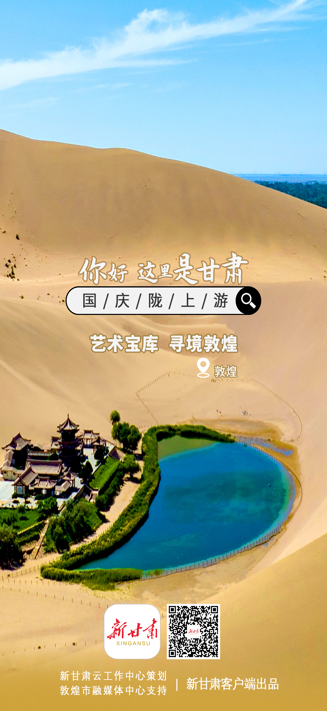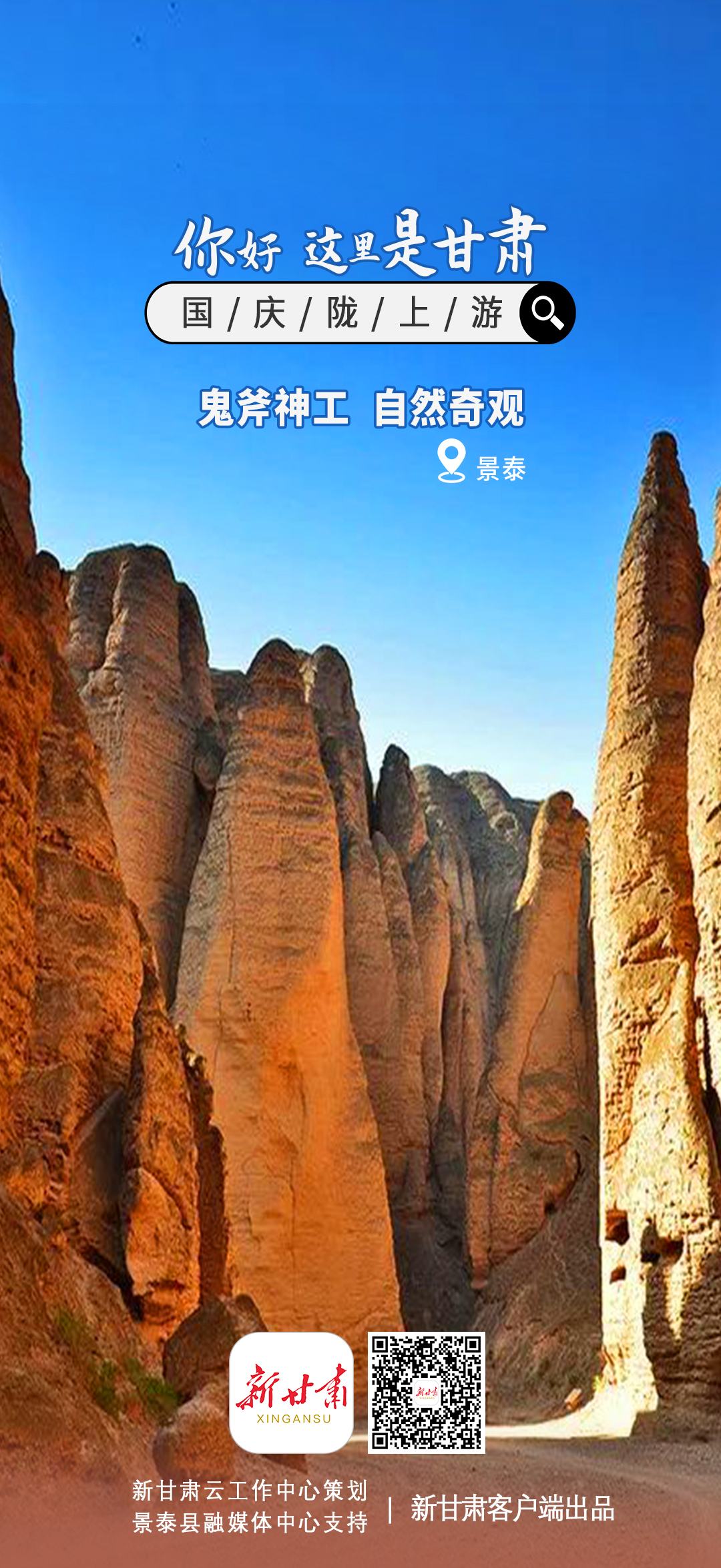 新甘肃客户端通过甘肃省融媒体省级技术平台“新甘肃云”联动省内县(区)融媒体中心,联合推出特别策划【你好,这里是甘肃】——国庆陇上游系列海报,展现省内著名旅游景点。每张海报的二维码均关联对应地方的相关新闻。欢迎大家长按二维码查看详情。