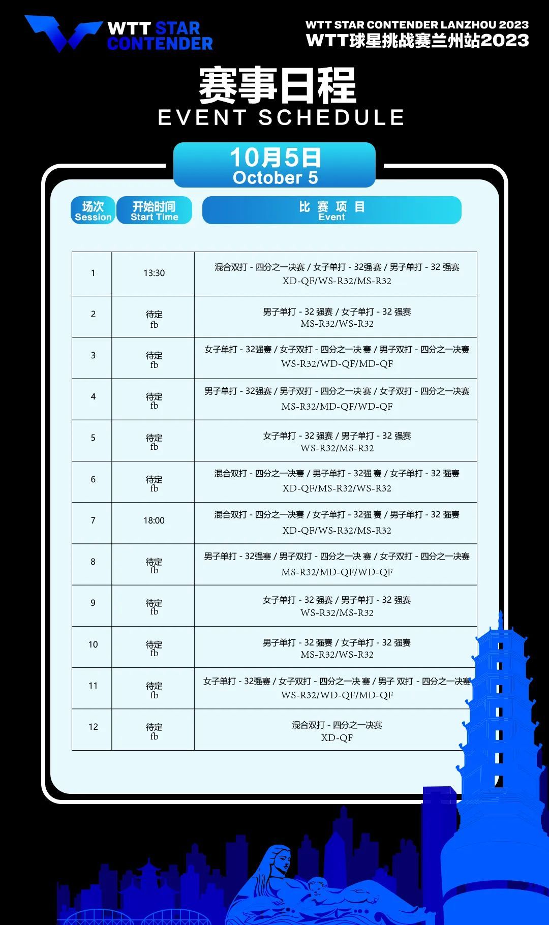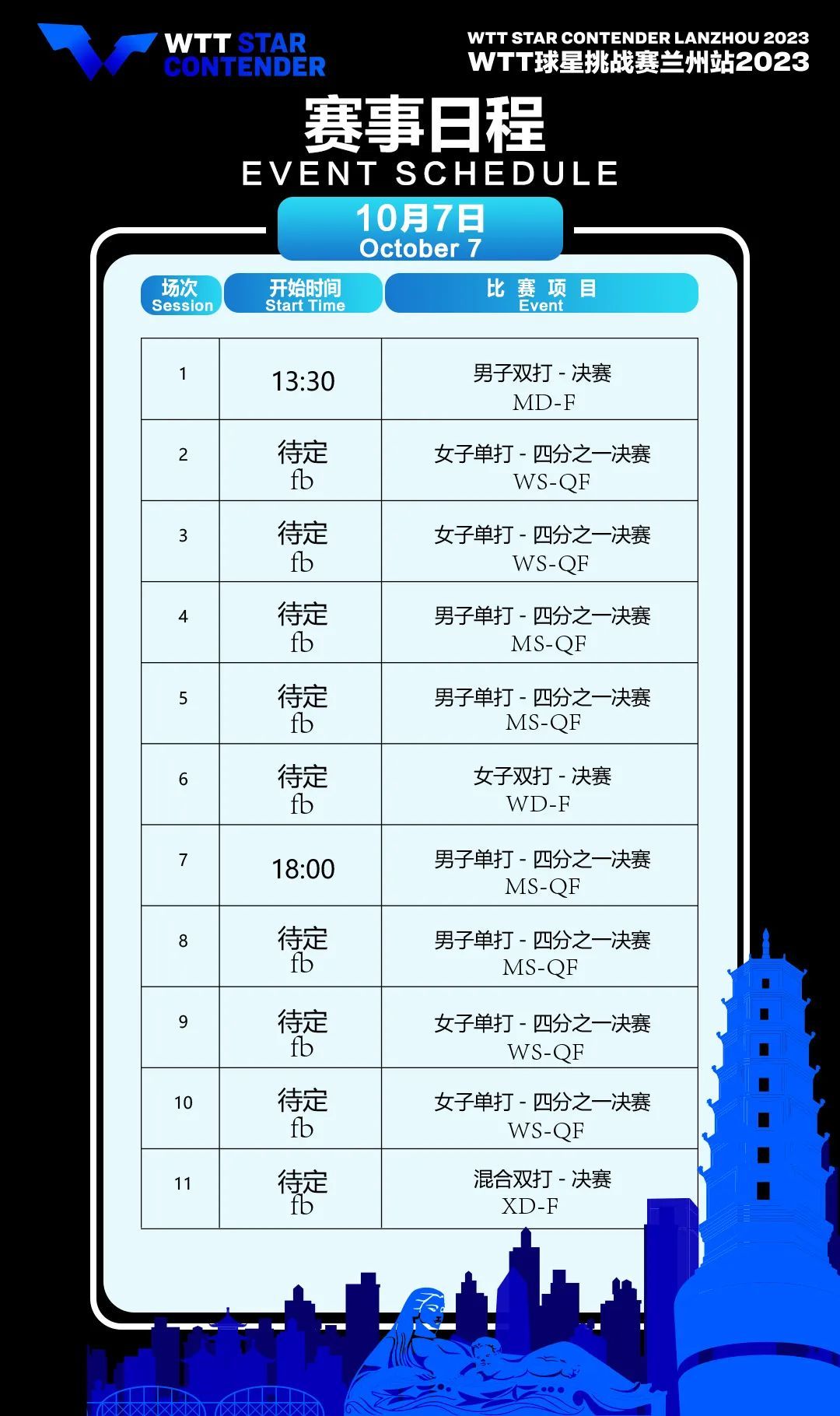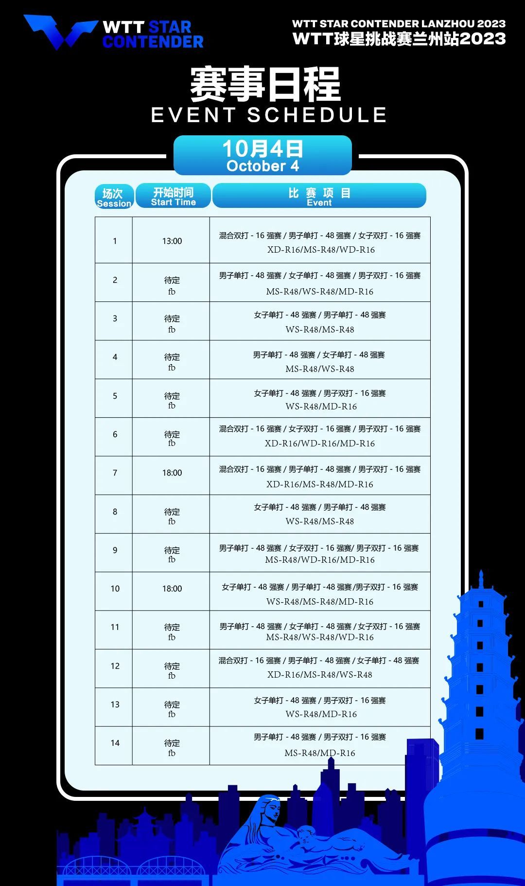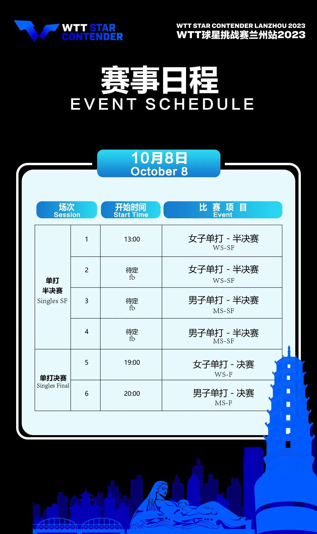奔流新闻:WTT球星挑战赛兰州站2023赛程更新