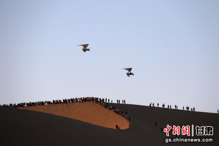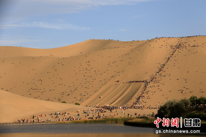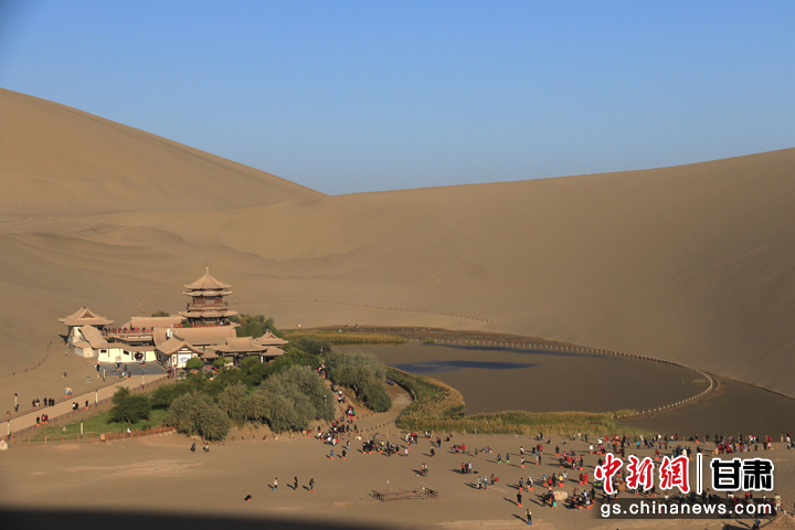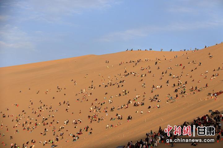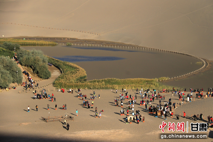 今年以来,甘肃省敦煌市旅游市场持续火热。当地著名景点鸣沙山月牙泉在今年中秋国庆假期期间,累计接待游客首次突破300万人次,比2019年同期增长35.5%,创历史新高。(张晓亮 习刚)