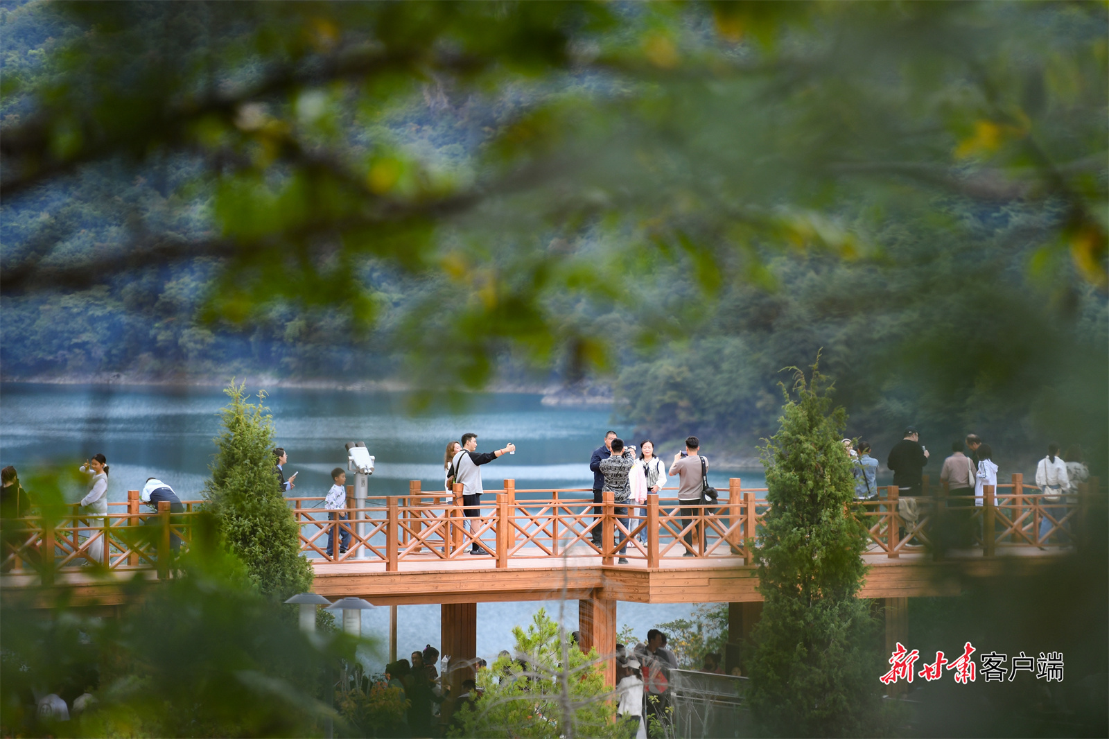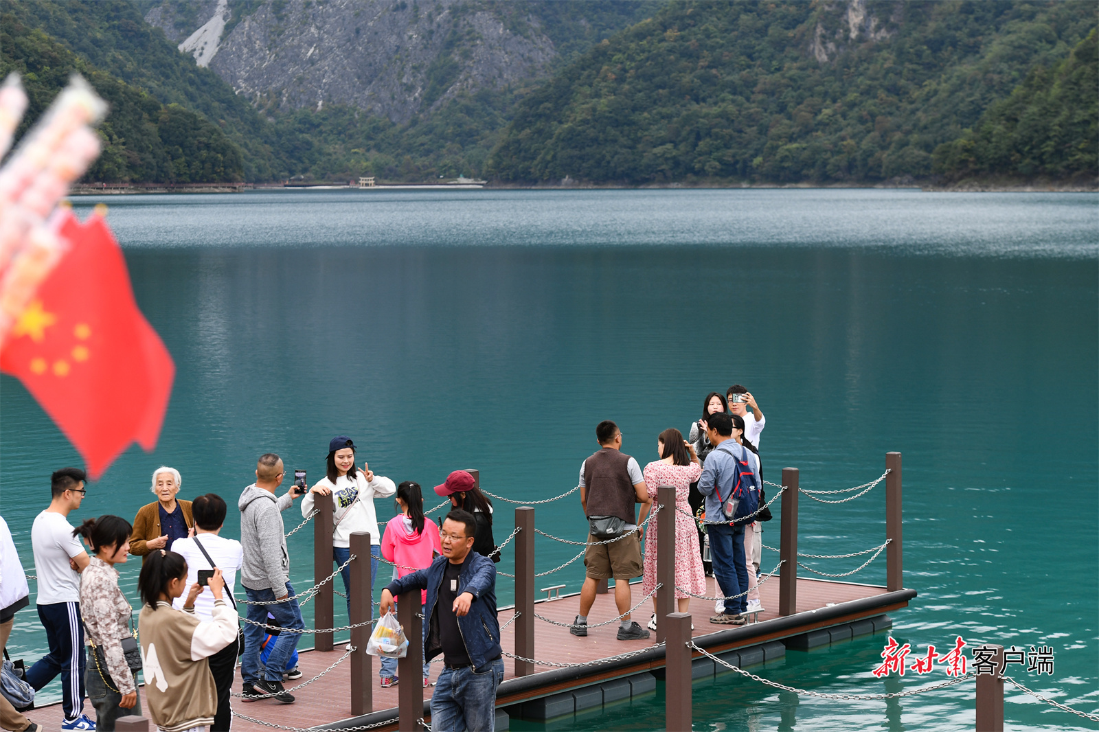 “双节”期间,文县天池景区满目苍绿,山间云雾缭绕,群山、绿树、白云,倒映在幽蓝的湖水之中,如诗如画,形成了一幅秋日美景,令人沉醉。