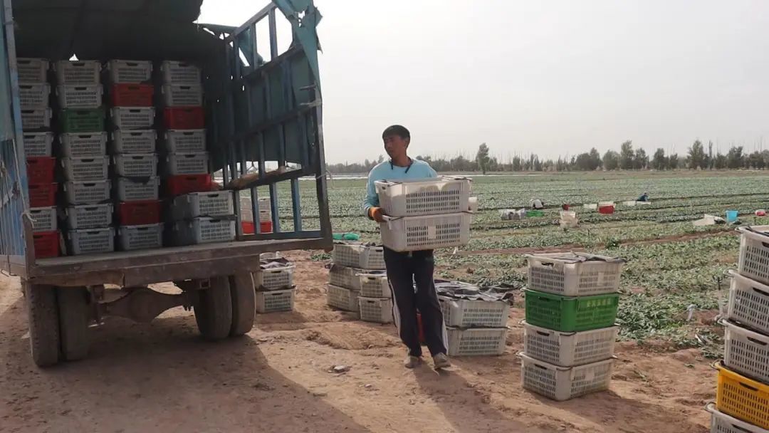 在甘肃省敦煌种业集团金昌金从玉农业科技有限公司,几辆冷链物流货车正等待装车发货,48小时后,广东、香港、澳门等地市民的餐桌上将会端上从金昌新鲜采收的上海青。