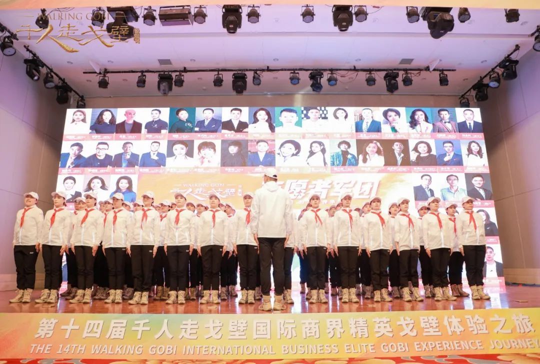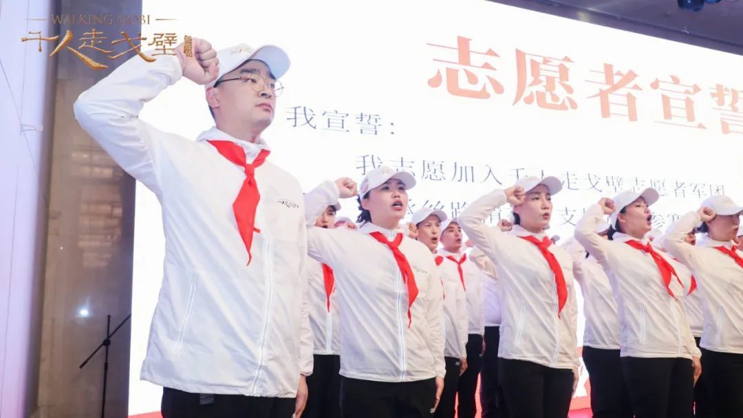“准备好了吗?”,“时刻准备着!时刻准备着!时刻准备着!”,志愿者军团迈着整齐的步伐,喊着响亮的口号登上主舞台,接受现场所有徒友的检阅,并进行庄严的宣誓。这些平时活跃在社会各界的企业家、社会精英从繁忙的工作中抽身出来,只为在未来的四天三夜里,在戈壁为徒友们提供更美好的生命体验。