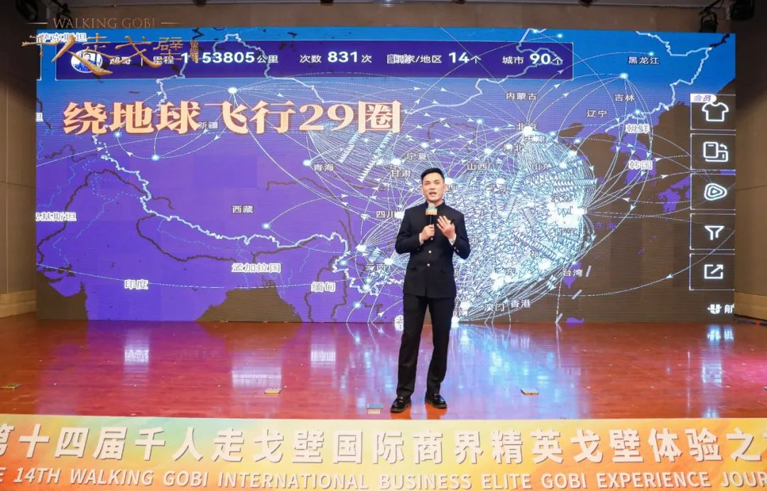 7年来,赵总为了心中的使命,考察多国路线,往返飞行距离达110多万公里,公里数可绕地球29圈,目前开发的多条线路中,影响力最大的还是戈壁。戈壁不仅成就了许多企业家,也成就了许多对情侣,赵总为大家分享了自己与郝敏儿因戈壁结缘的爱情故事。 “不是看见美好才选择出发,而是走下去才看见美好” ,多年来,他们相伴而行的足迹已遍布全球各地。