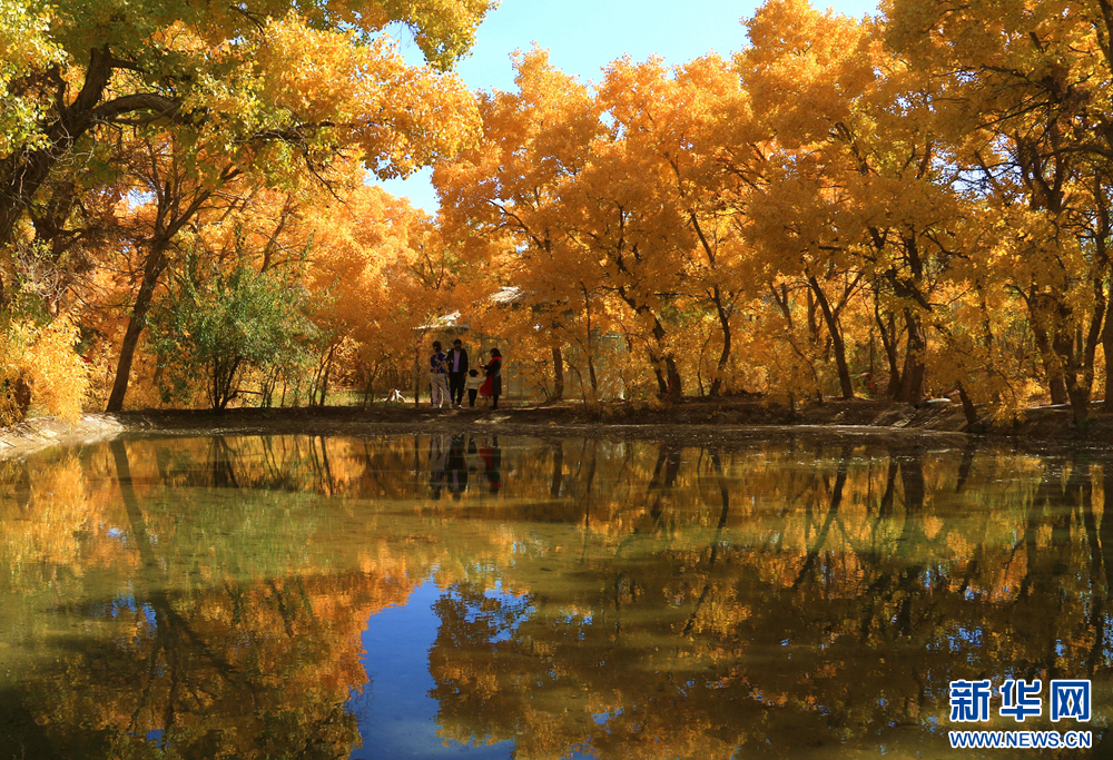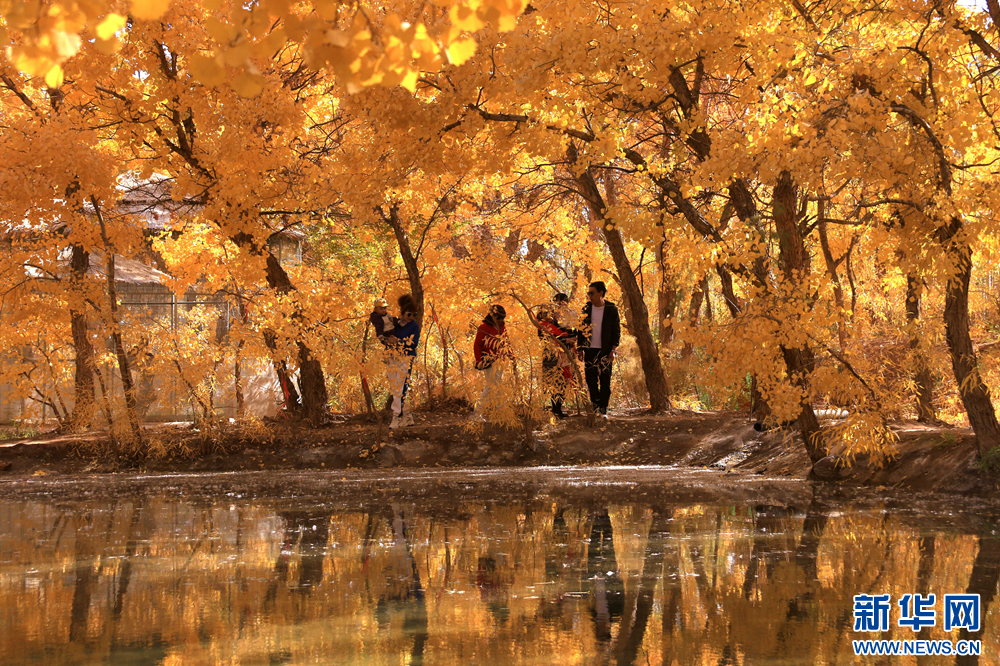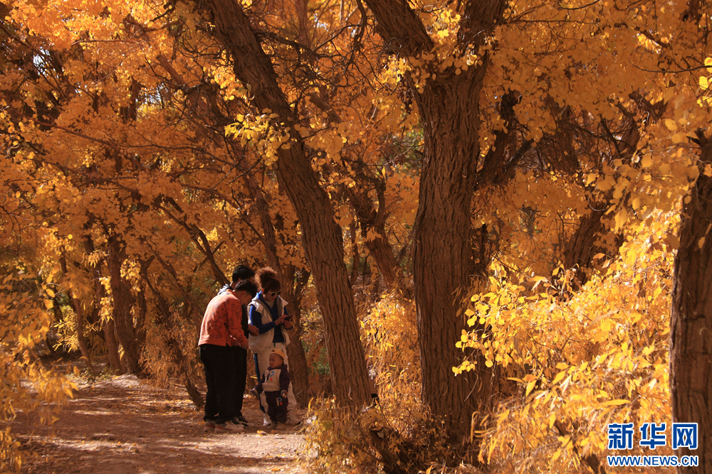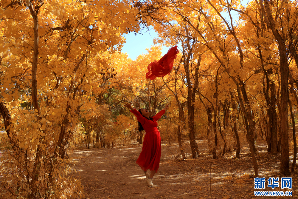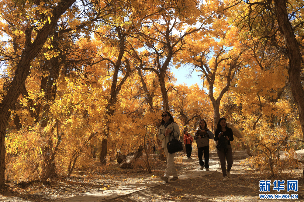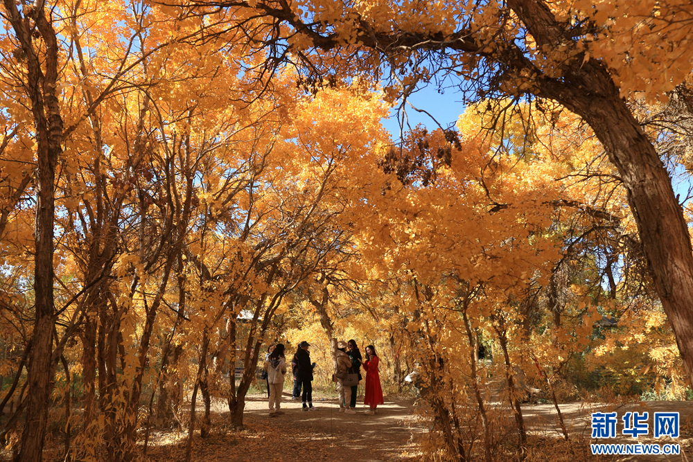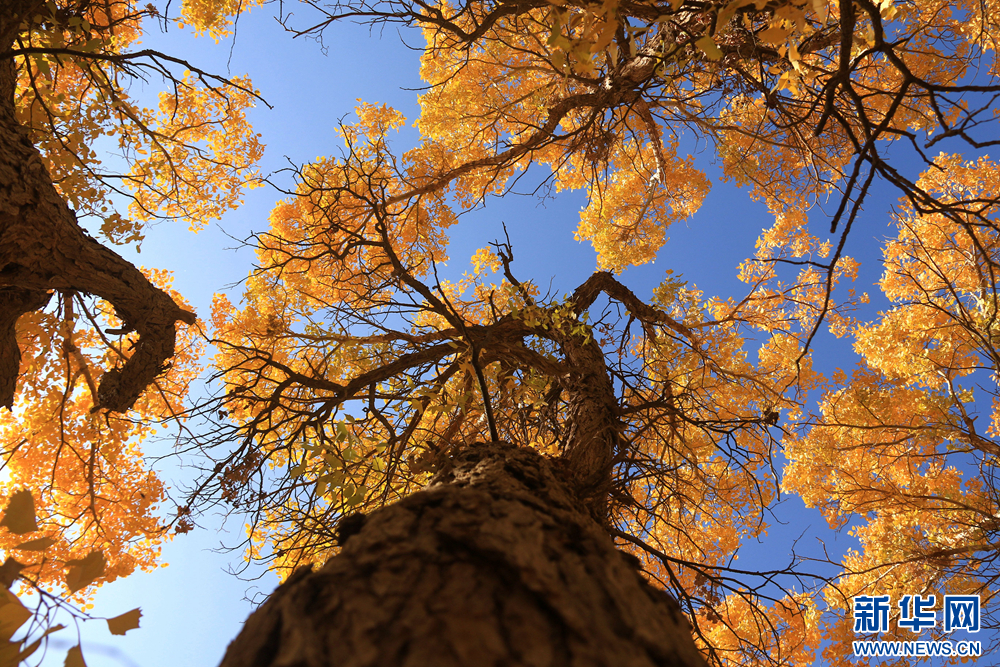 金秋时节,甘肃省敦煌市莫高镇的胡杨林被秋色润染,在阳光的照射下,宛如画卷,美不胜收。新华网发(张晓亮 摄)