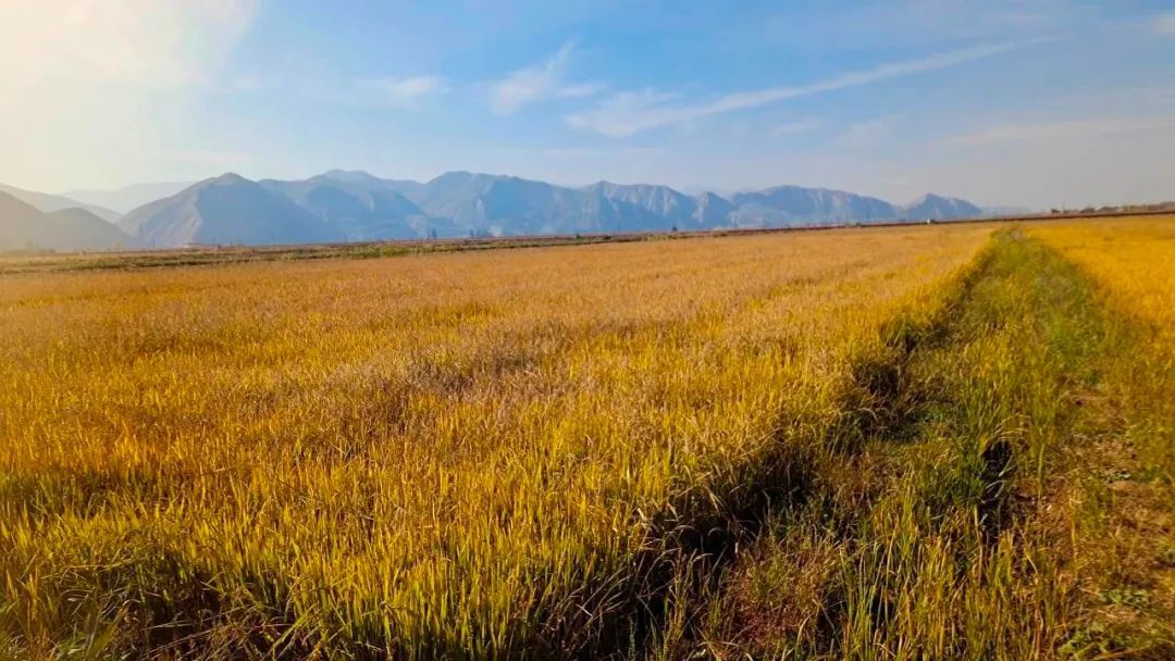 金秋十月,在靖远县北湾镇天字村的天津抗盐碱水稻实验基地,金灿灿的稻田一望无际,颗粒饱满的稻穗压弯了稻秆,为秋日的大地披上了一袭金色的新装。伴随着机械的轰鸣声,收割机在稻田里来回穿梭,将成熟的水稻收入“囊”中,呈现出一派热火朝天的丰收景象。