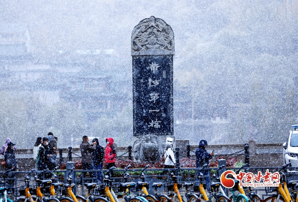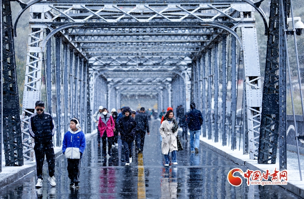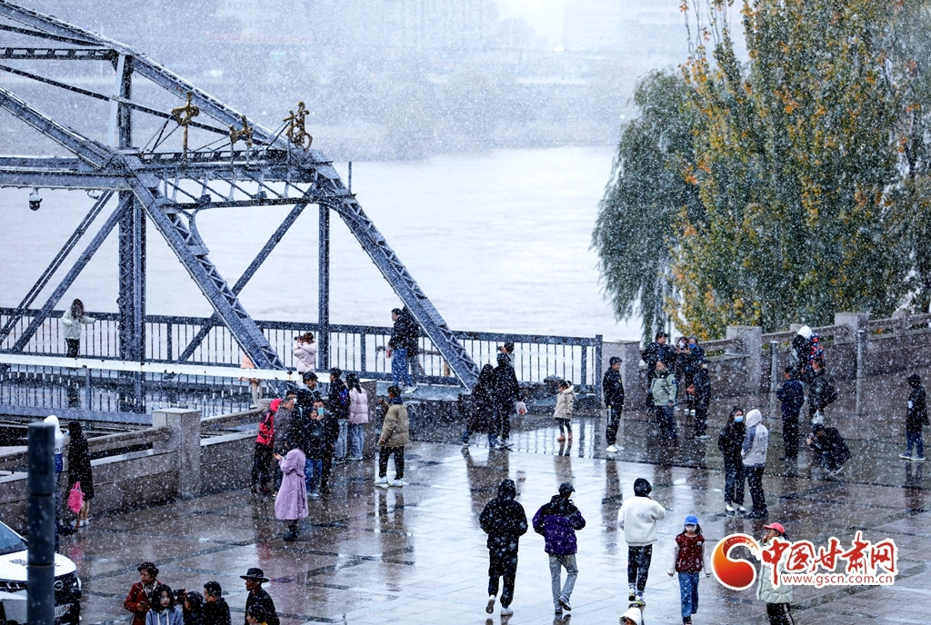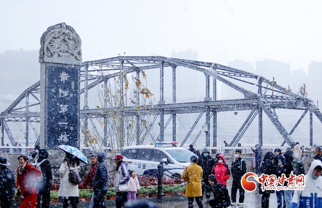 11月5日,受冷空气影响,甘肃省兰州市迎来了金秋第一降雪,晶莹剔透的雪花纷纷扬扬从天而降,中山铁桥、金城关、白塔山等城市地标在飞扬的雪花中“披上银装”,美轮美奂的金城雪景迅速刷爆了朋友圈。