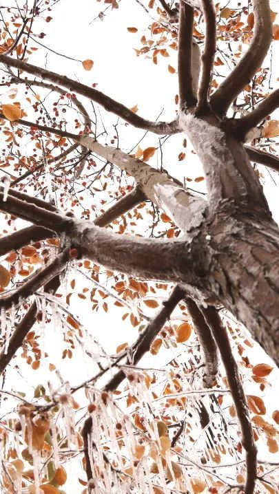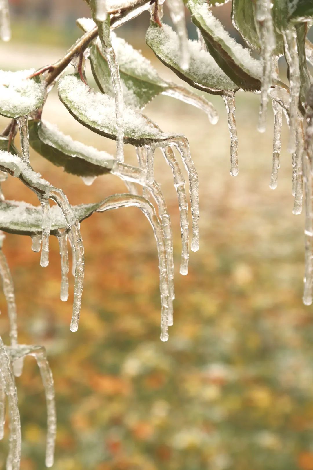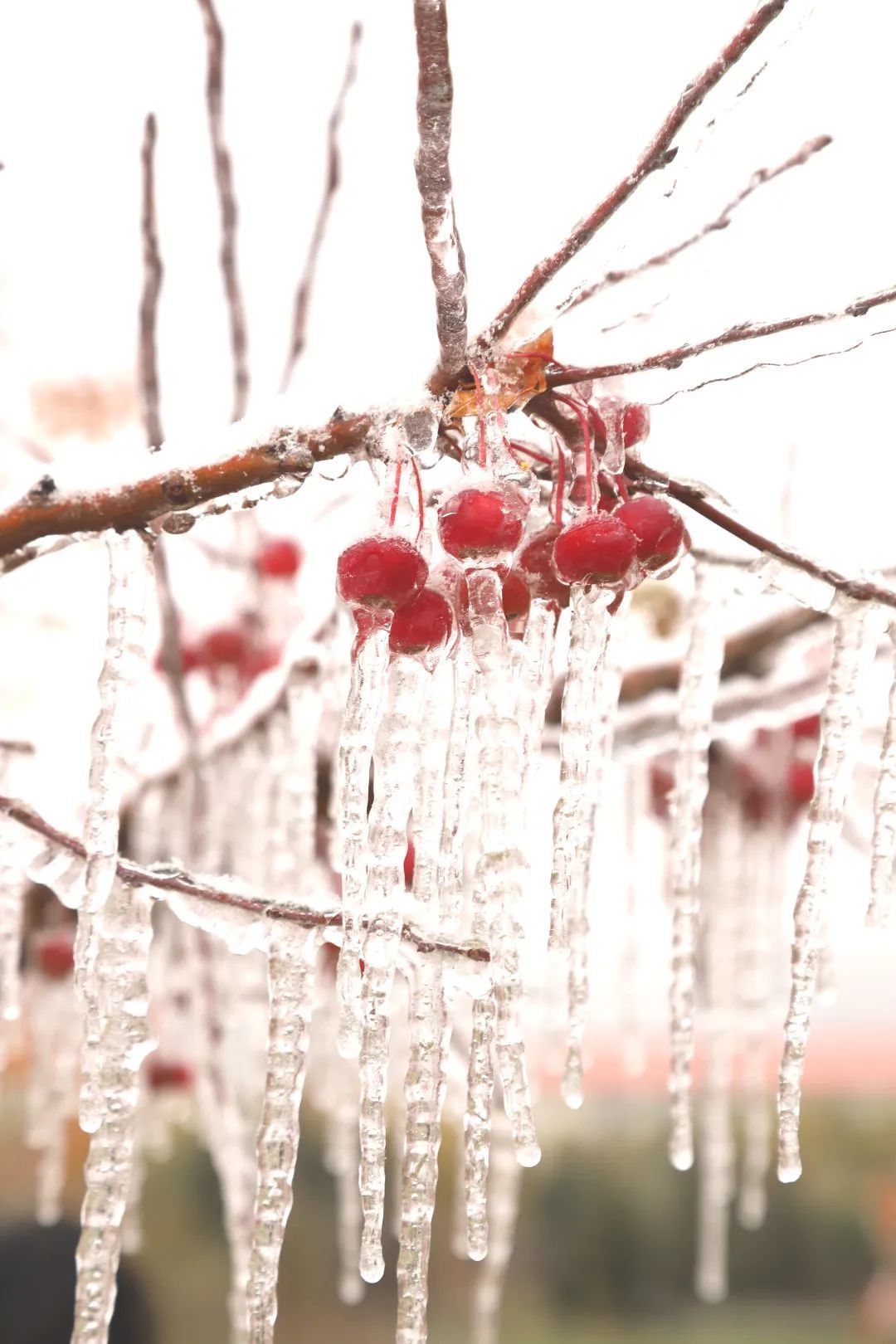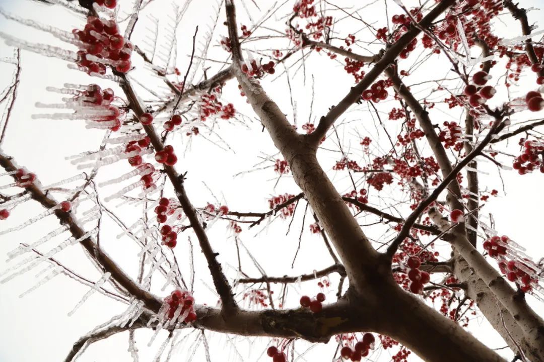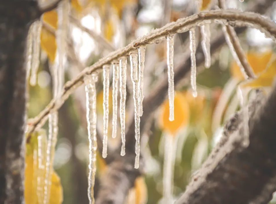 透明的冰将树枝温柔包裹
