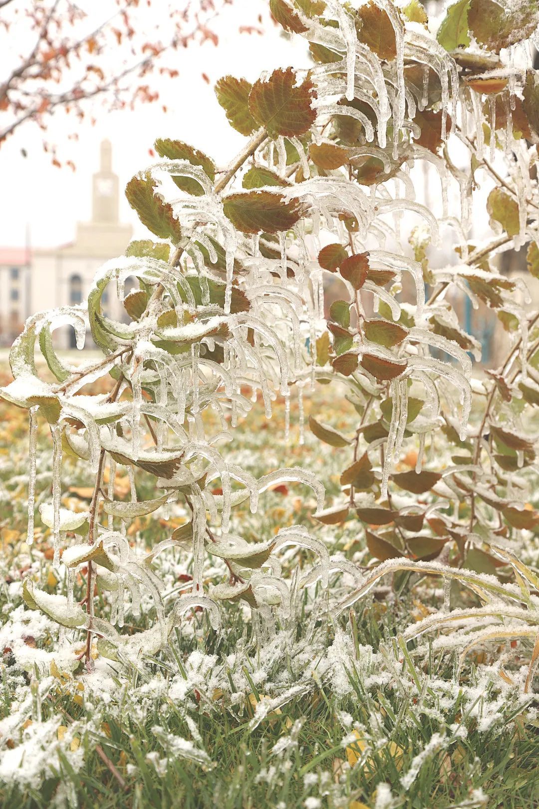 兰州大学官方公众号:兰大初雪,“冰雕”抢镜