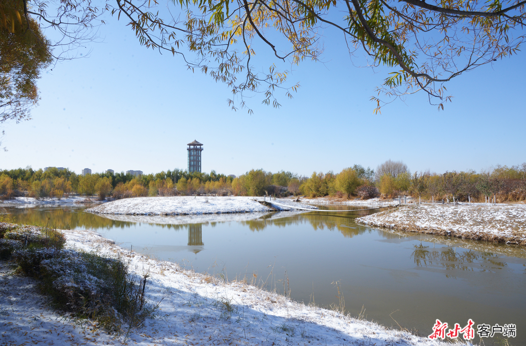 雪落张掖国家湿地公园,美景如画。文中图片均由新甘肃·甘肃日报记者 侯洪建 摄