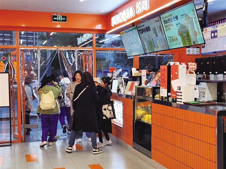 11月5日,记者来到放哈大众巷门店,想要点一杯全网热议的联名奶茶,店员告知该奶茶已经卖断货,正在加急补货。和记者一样,当日慕名前来的消费者不少,在店里停留的短短几分钟之内,便有四波客人进店点名要这两款联名奶茶。大家悻悻而归的同时,不忘催问何时能重新上架销售。