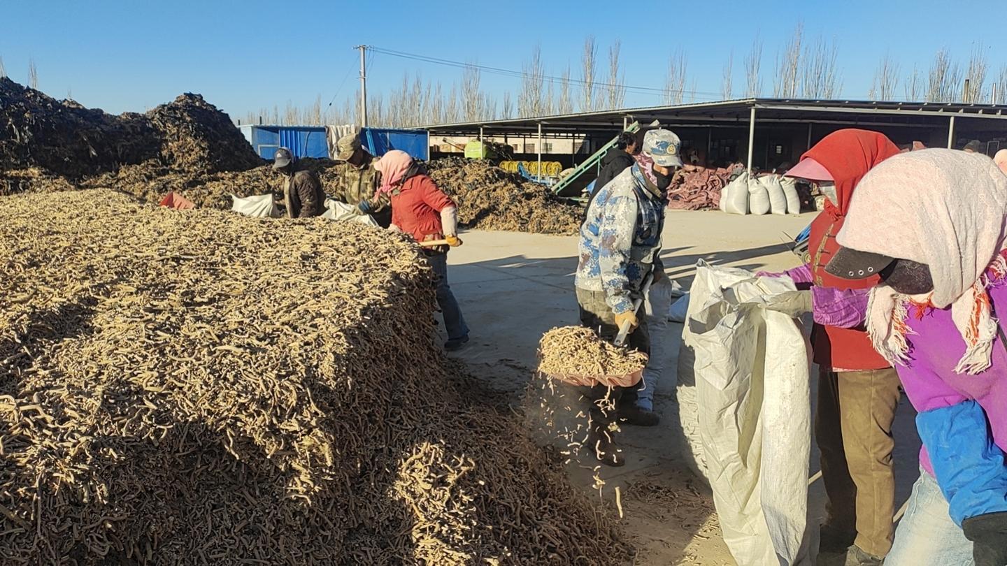 “这两天农闲了,地上也没活了,这里离家近,正好到这里装板蓝根,一天下来收入也不错。”鼎新镇友好村村民赵兴海笑着说道。