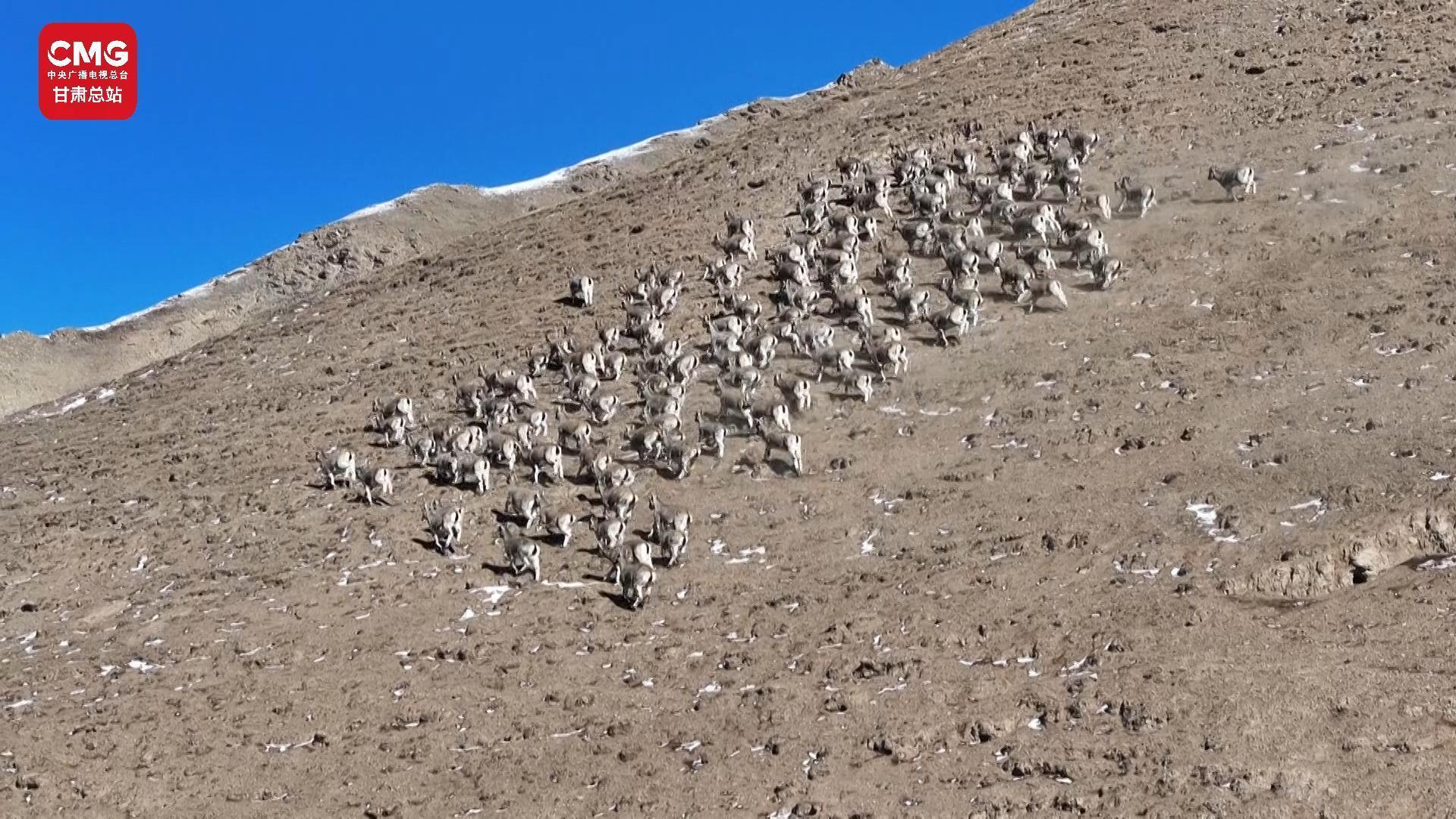 近日,甘肃省张掖市民乐县公安局森林警察大队民警在海拔2800米的扁都口林区用无人机巡护时,拍到“岩壁精灵”国家二级保护动物岩羊在雪地觅食、奔跑的珍贵画面。成群的岩羊在头羊带领下,或在峭壁上灵活跳跃、奔跑,或在山坡上觅食、漫步,画面非常和谐。这是该县首次利用无人机在扁都口林区拍摄到成群的岩羊。
