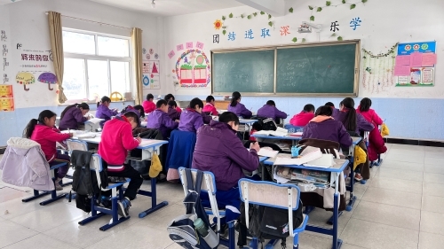 在大寨乡桂花寄宿制小学,同学们身着新运动服正在认真写作业。为了深入推进未成年人教育关爱行动,呵护困难家庭学生和留守儿童健康快乐成长,帮扶干部和志愿者多次深入学校,给予困难家庭学生和留守儿童物质上的资助,缓解他们生活、学习、思想上的压力,帮助他们解决遇到的实际困难。据统计,崆峒区383名孤儿(事实无人抚养儿童)及669名困境、留守儿童获得捐赠20余万元的温暖包1052个,形成了全区上下弘扬爱心、传递温暖的良好局面。