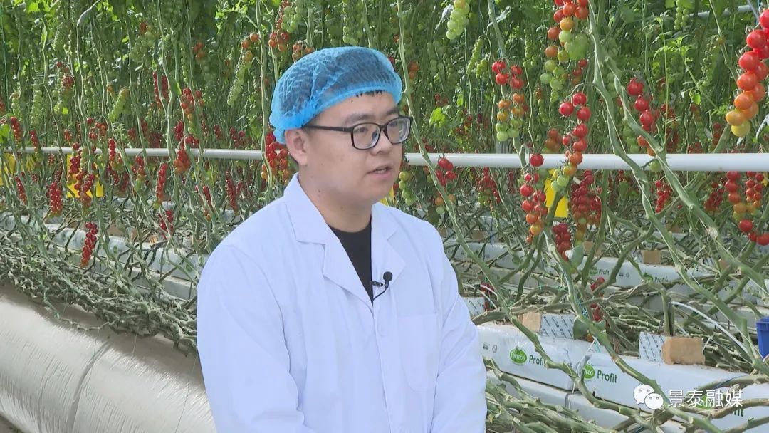 与传统番茄种植不同的是,这里的番茄不是长在地上,而是全部采用椰糠吊架种植,以“科技引领”,全方位深入生长各环节,实现精准化管理、可视化操作和智能决策。