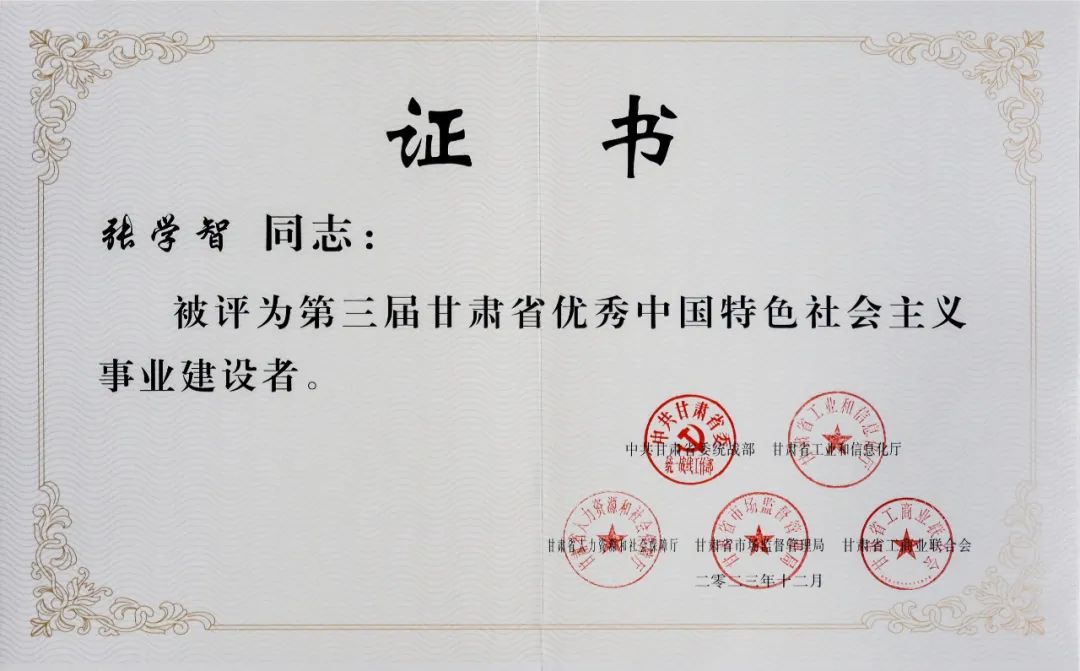 12月8日上午,全省促进民营经济高质量发展大会在兰州召开,会上,为荣获甘肃省第三届非公有制经济人士优秀中国特色社会主义事业建设者代表颁发证书,兰州文创产业园有限公司董事长张学智等100名非公有制经济人士获得表彰。