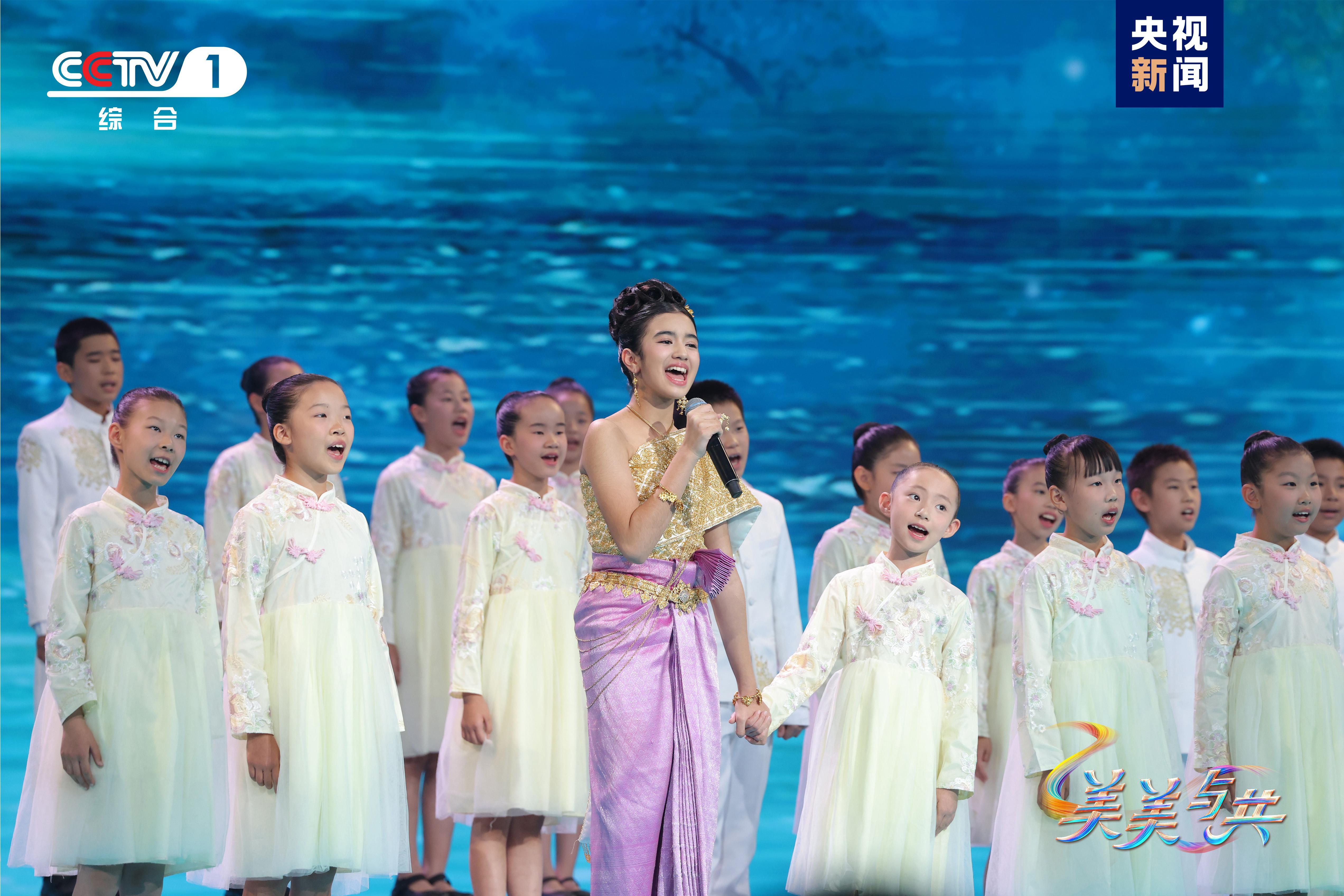 柬埔寨王国王室成员诺罗敦·珍娜公主也来到节目现场,与中国小朋友携手共唱《共饮一江水》,并为大家讲解了柬埔寨经典的仙女舞的手势动作。诺罗敦·珍娜公主介绍,仙女舞的手势动作展示了一朵花绽放的过程。小公主在节目中用优美的歌声唱起曾祖父西哈努克太皇所写的《怀念中国》,西哈努克太皇曾说,中柬两国的友谊,就像一朵永不凋零的花。