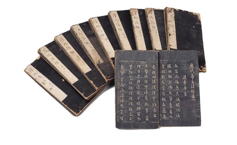 淳化阁帖是北宋王朝编印的我国历史上第一部大型书艺法帖,集宋朝以前书法艺术之大成,印数不多且刻版毁于火,流传帖本量少,十分珍贵。明王朝建立之后,朱元璋赐其第14子朱楧一部宋初拓印本淳化阁帖。肃王府一直视此帖为传代之宝,秘不示人。