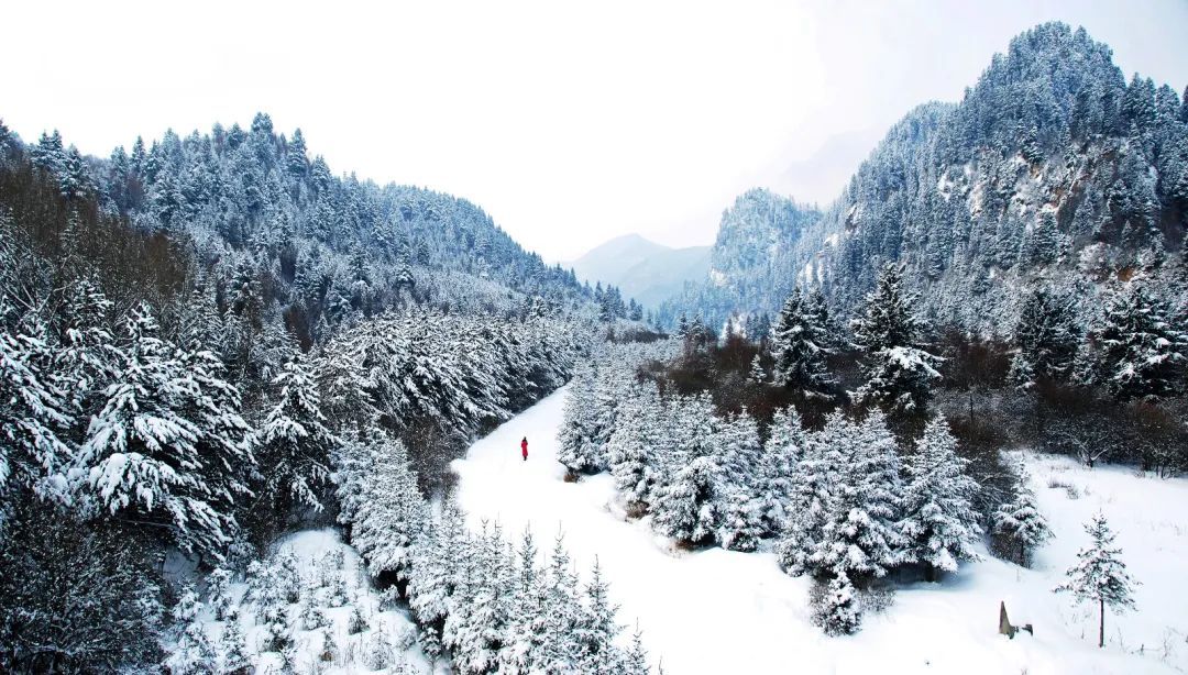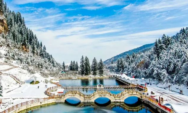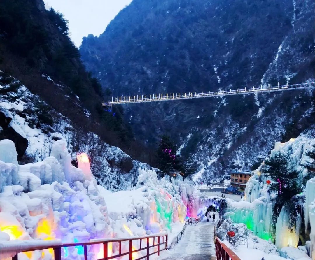 冬日的草长沟,冰封秩秩斯干,雪染幽幽南山。峦峰、白雪、秀谷、密林、细流等自然美景交织在一起,静谧的冬雪包裹着层层密林,游乐、嬉戏、赏灯、民宿各种娱乐设施齐全,是玩冬雪度新春的绝妙之地。