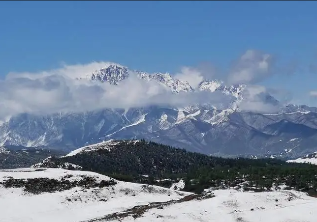 太子山是临夏州内的最高峰,因雪线以上的峰顶石如骨露,也称“露骨山”或“白石山”,又因四时积雪覆盖,也称“雪山”。太子山绵延广阔,南北纵横十余千米,山势巍峨壮观,长年云遮雾罩,登高望远,但见山顶白雪皑皑,山下林海松涛。