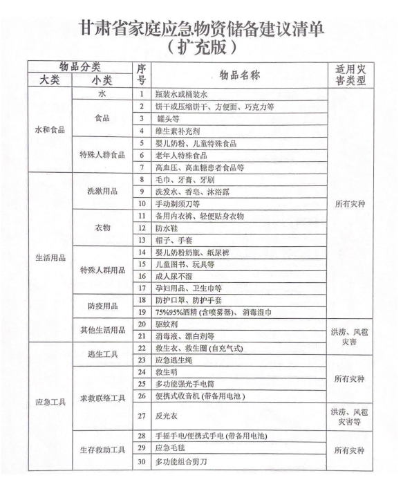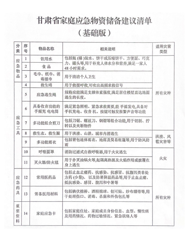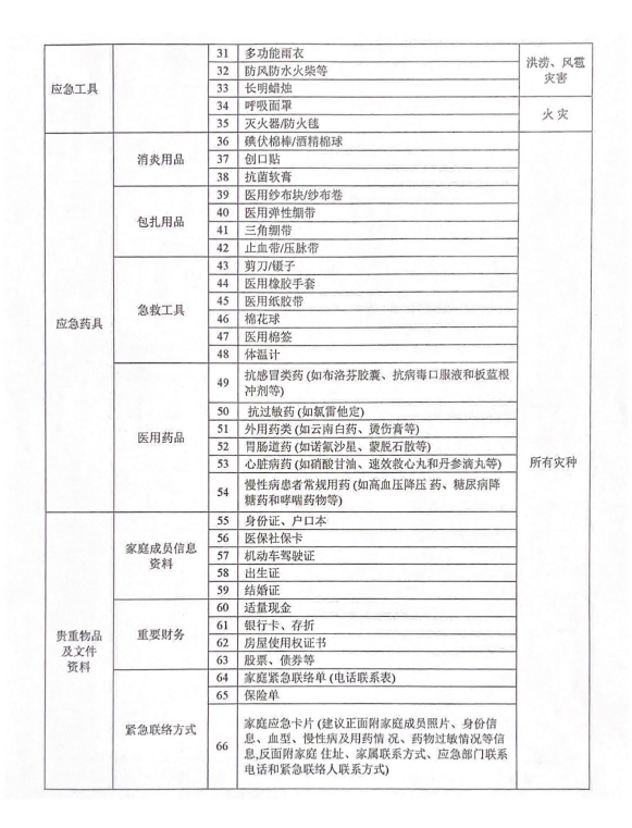 下面有一份家庭应急物资储备建议清单