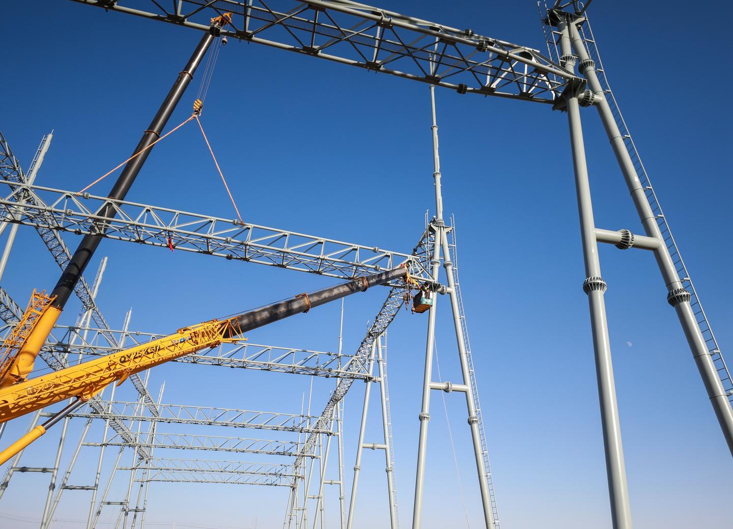 当日,随着最后一榀钢梁吊装完成,标志着金塔750千伏变电站工程330千伏配电装置区构架吊装工作顺利完成,为工程下一步施工打下坚实基础。