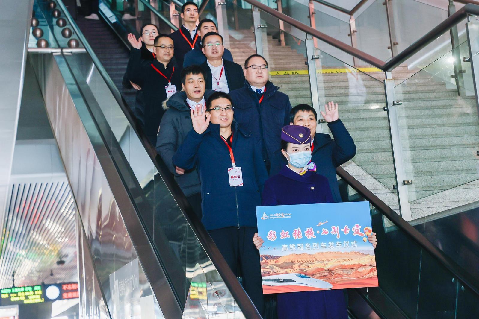 观澜新闻客户端讯(兰州日报社全媒体记者 薛晓霞)1月11日上午,由张掖七彩丹霞旅游景区冠名的“彩虹张掖·七彩丹霞”高铁在上海虹桥高铁站盛装开行。