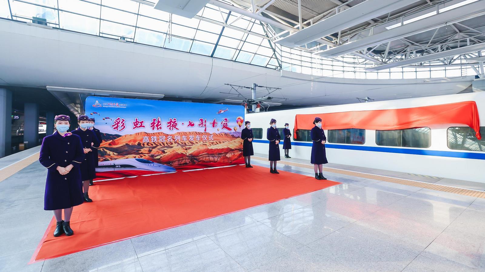记者了解到,“彩虹张掖·七彩丹霞”冠名高铁为上海局上南所CRH2A和谐号,途经上海、苏州、杭州、南京、无锡、绍兴、温州、宁波、东莞、厦门、深圳、武汉、重庆等重点客源地城市,有助于全方位宣传展示张掖及张掖七彩丹霞旅游景区的大美景观。