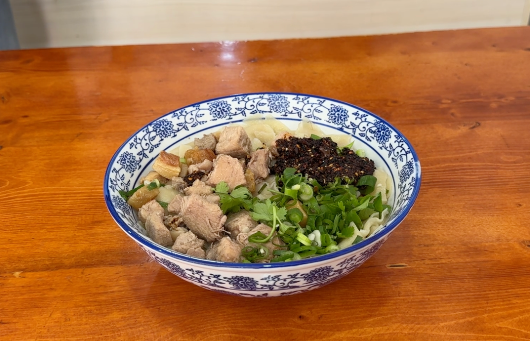 陇西大肉面其历史悠久,在当地久负盛名。香浓的卤汤、回味无穷的肉臊子、方形面片,配上香而不辣的辣椒油和葱花,可谓是色香味俱全。路过店铺,卤香味便扑面而来,让人食欲不止。到陇西旅游的人们,都要吃一碗陇西大肉面,定不虚此行。